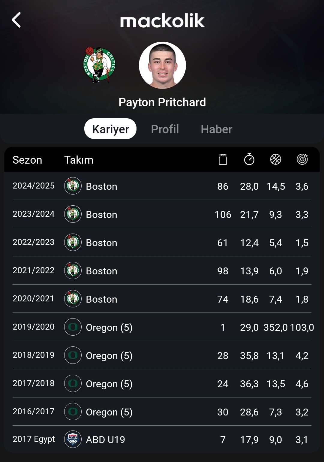 NBA'de Boston Celtics forması giyen Payton Pritchard, yılın 6. oyuncusu seçildi.