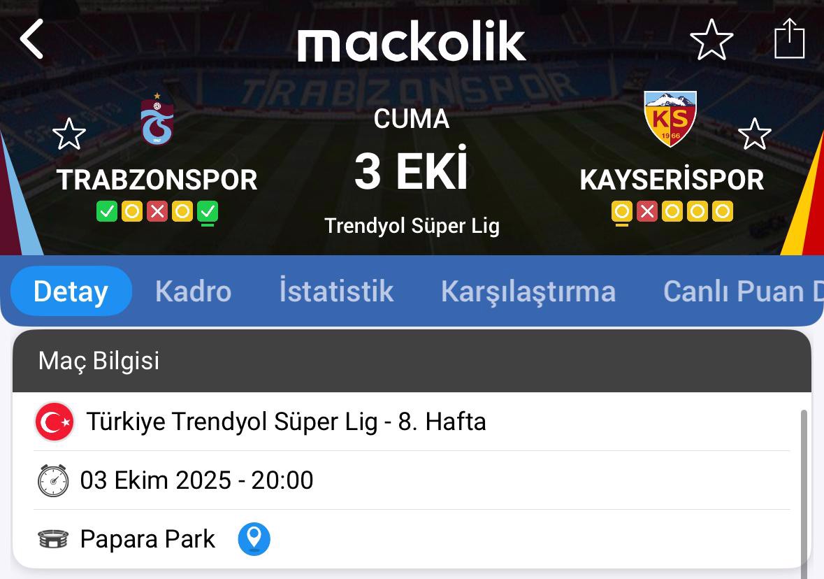 Süper Lig'in 8. haftasında Trabzonspor, 3 Ekim Cuma günü Zecorner Kayserispor ile karşılaşacak.
