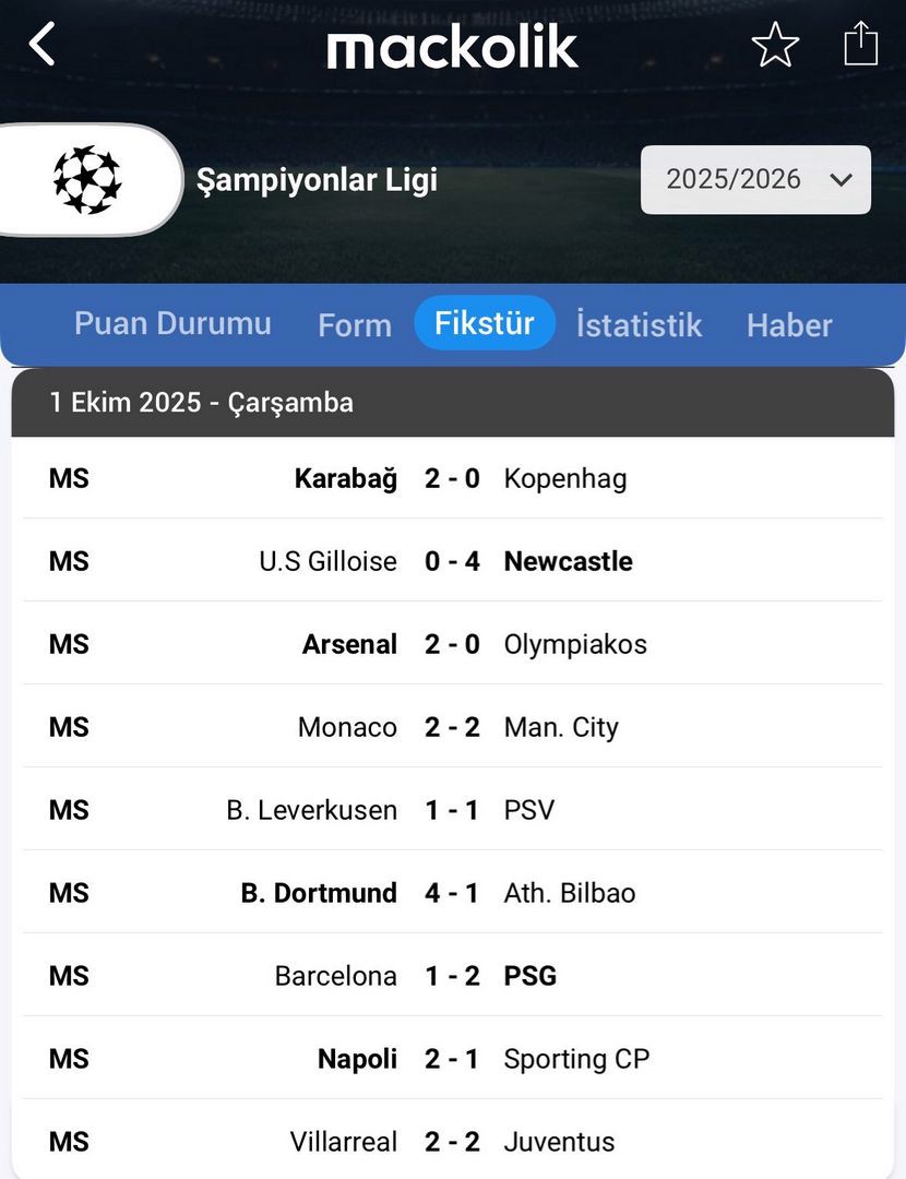 Barcelona, 3 puanda kalırken Şampiyonlar Ligi'nde sezona 4-0'lık Atalanta galibiyetiyle başlayan PSG, puanını 6'ya yükseltti.