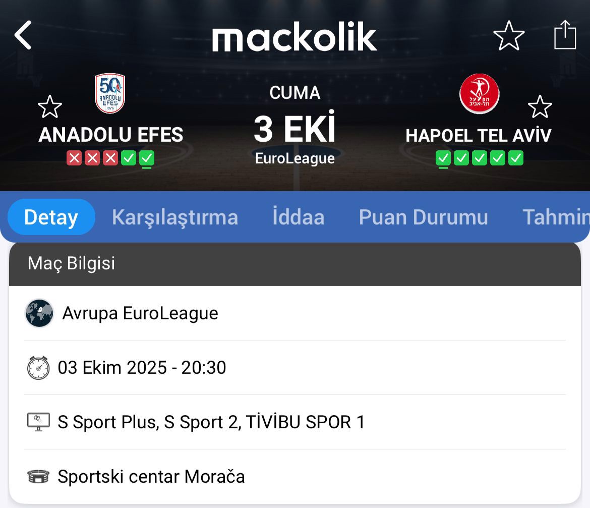 Anadolu Efes, EuroLeague'deki ikinci maçında Hapoel Tel Aviv ile karşılaşacak.