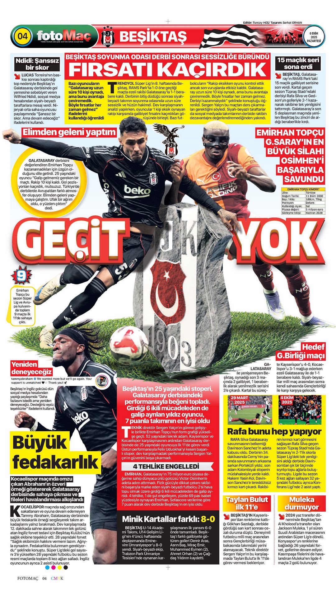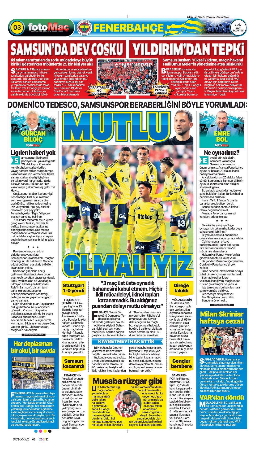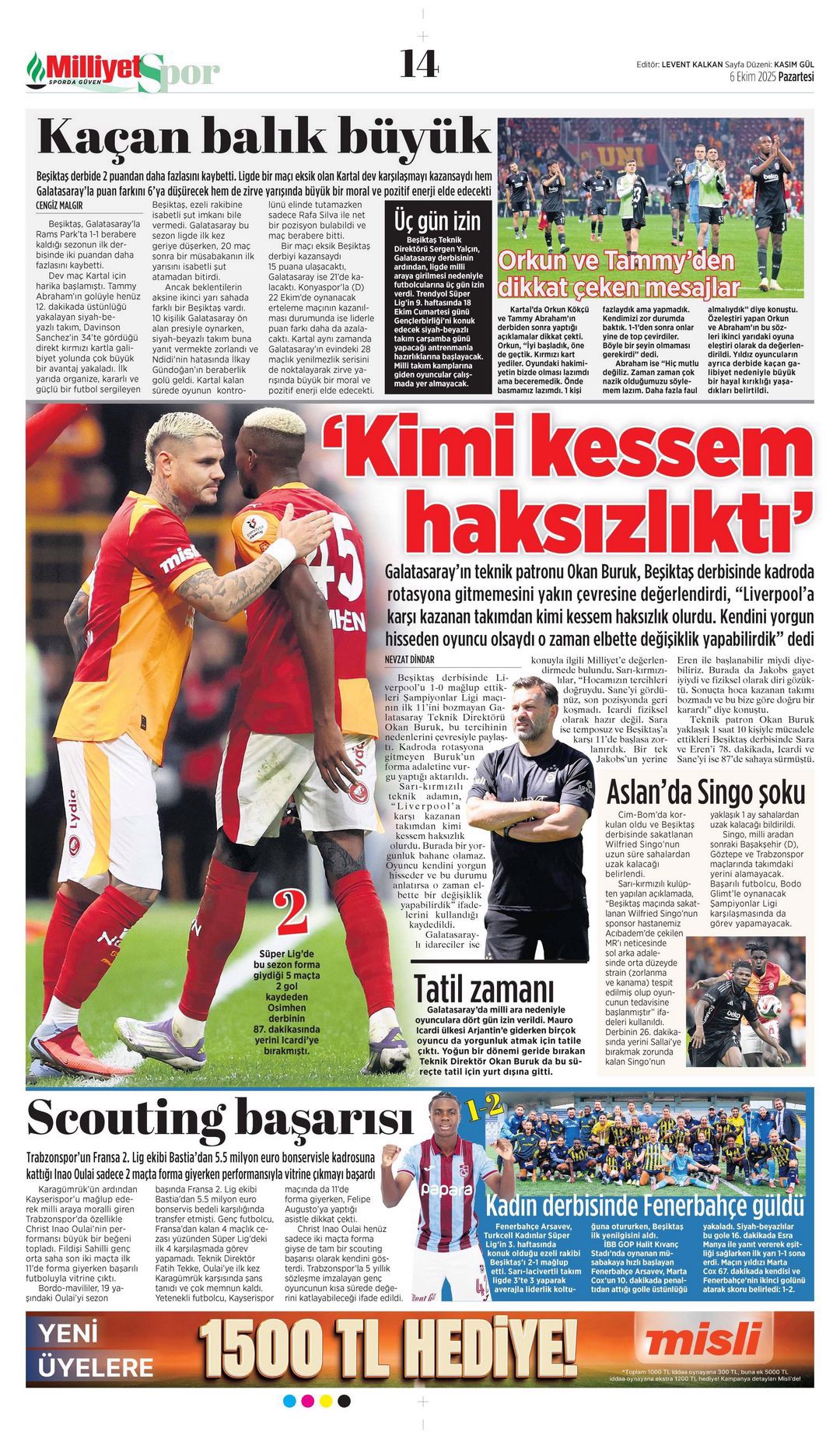 Gazetelerin spor sayfalarında günün öne çıkan manşetlerine göz atabilirsiniz.