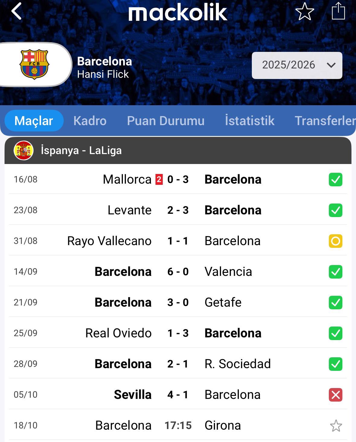 Barcelona, LaLiga'nın yeni sezonunda yoluna yenilgisiz devam ederken 5 Ekim Pazar günü Sevilla deplasmanından 4-1'lik ağır bir mağlubiyetle döndü ve ligde ilk kez kaybetti.