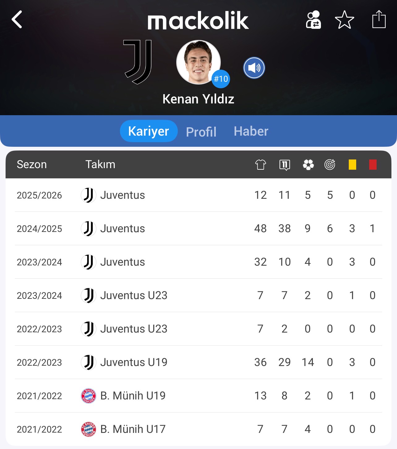 Bu sezon siyah-beyazlı formayla 12 maçta 5 gol ve 5 asist üreten Kenan Yıldız, Serie A'nın 3. haftasında oynanan ve 4-3'lük skorla Juventus'un galibiyetiyle sonuçlanan Inter derbisinde, 1 gol ve 1 asist ile maçın oyuncusu seçildi. Torino ekibiyle sergilediği performans, İtalyan basınından da büyük övgü aldı.