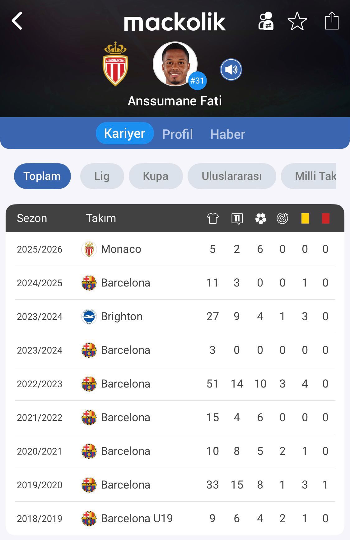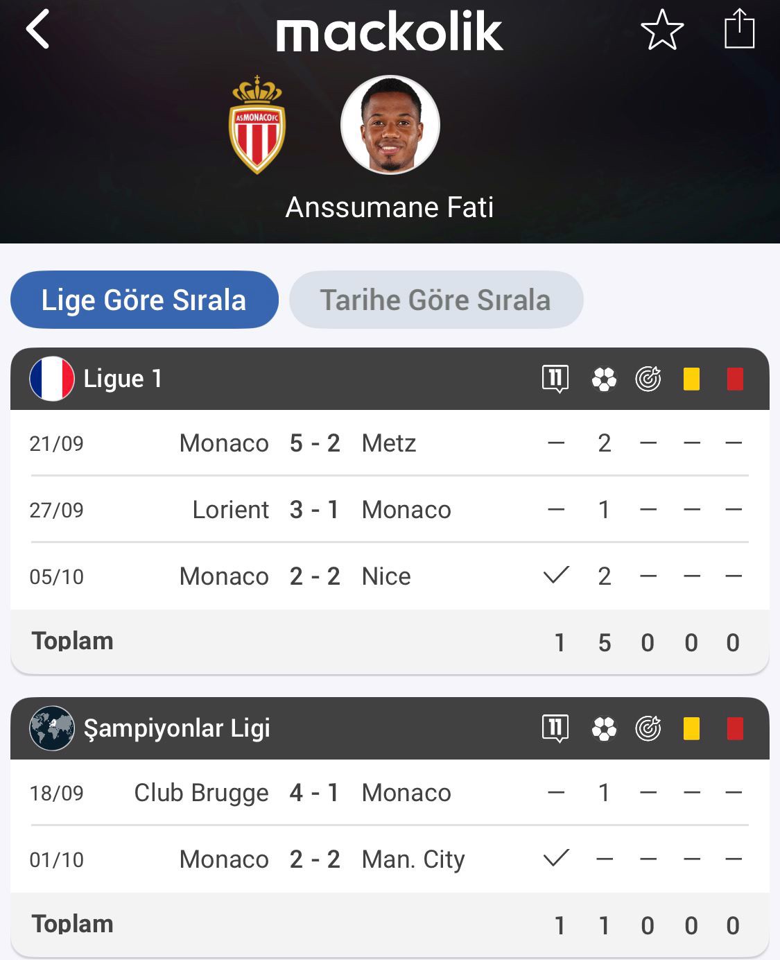 AS Monaco'nun bu sezon Barcelona'dan kiraladığı 22 yaşındaki Ansu Fati, bu sezon takımıyla şu ana kadar çıktığı 5 maçta attığı 6 golle ekibini sırtlayan isim oldu.