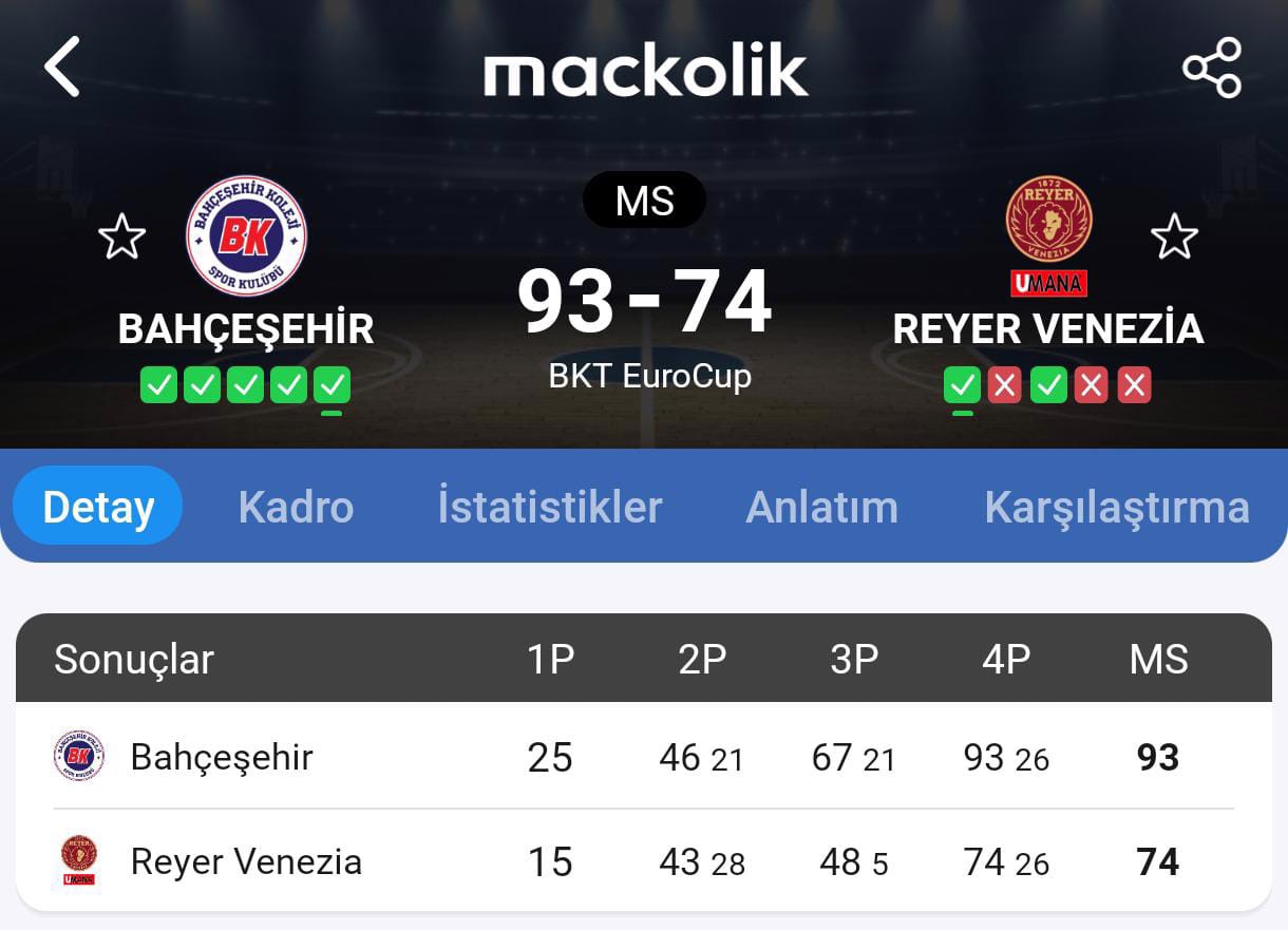 BKT EuroCup'ın ikinci haftasında Bahçeşehir Koleji, Sinan Erdem Spor Salonu'nda İtalyan ekibi Reyer Venezia'yı 93-74 mağlup ederek Avrupa'da üst üste ikinci galibiyetini aldı.