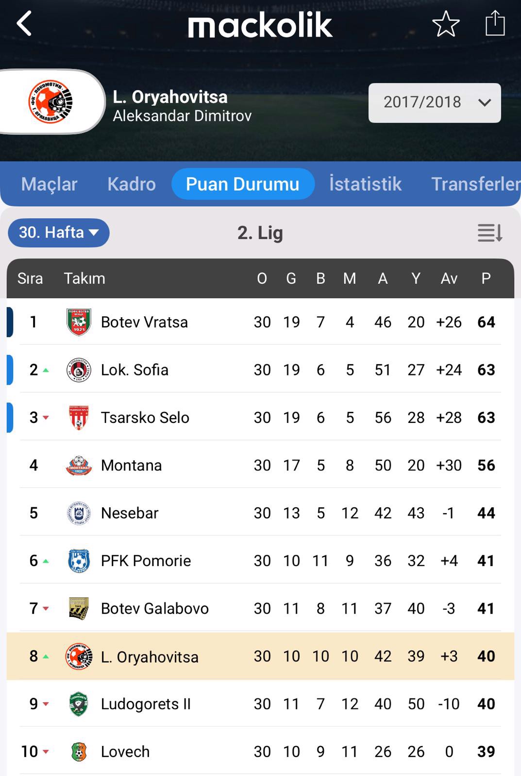 Dimitrov'lu Lokomotiv inişli çıkışlı bir sezonun sonunda Bulgaristan 2. Lig'ini 40 puan toplayarak 8. bitirdi.
