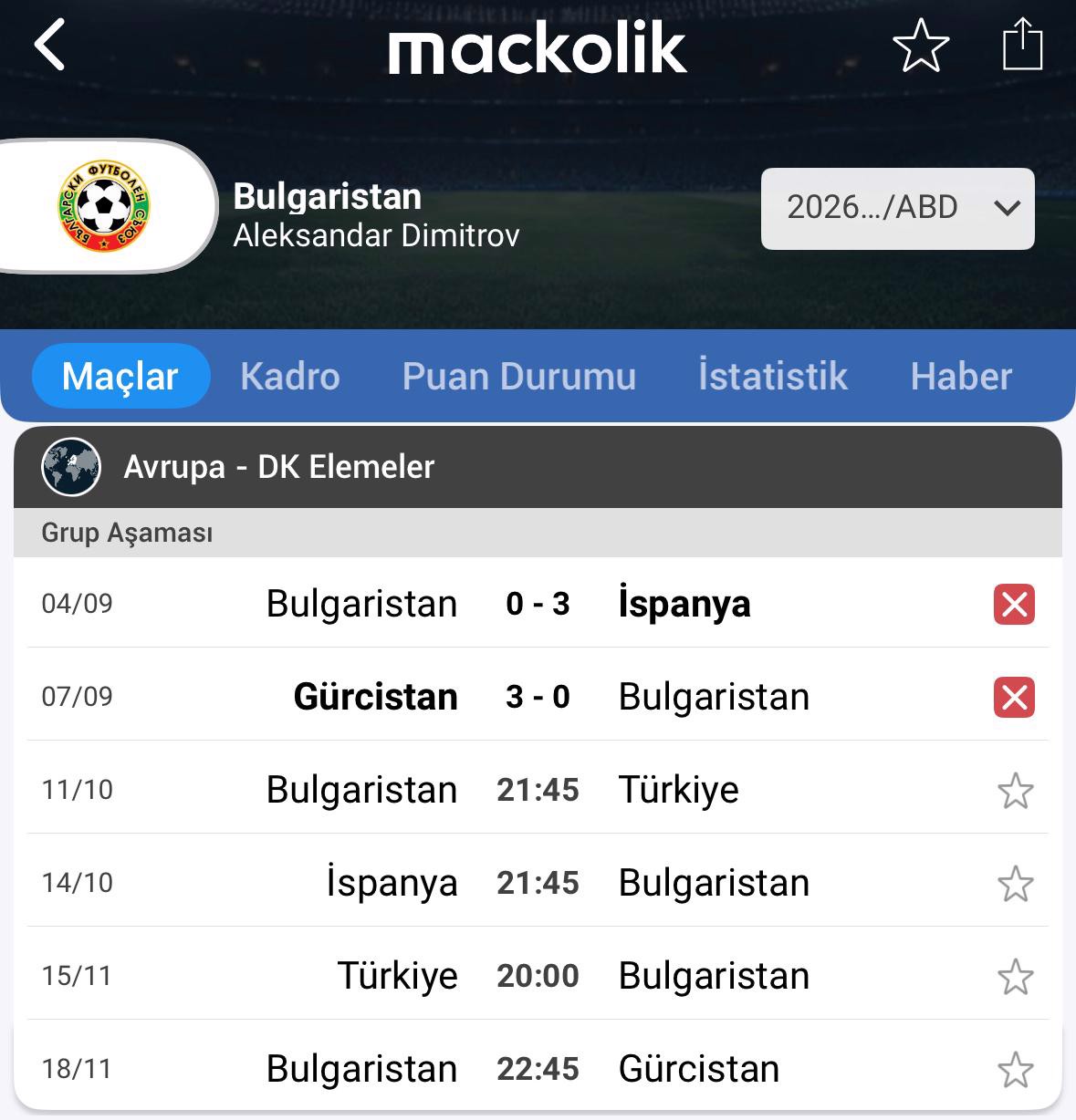 Dünya Kupası Elemeleri E Grubu'nda A Milli Erkek Futbol Takımımız deplasmanda Bulgaristan ile karşılaşacak.