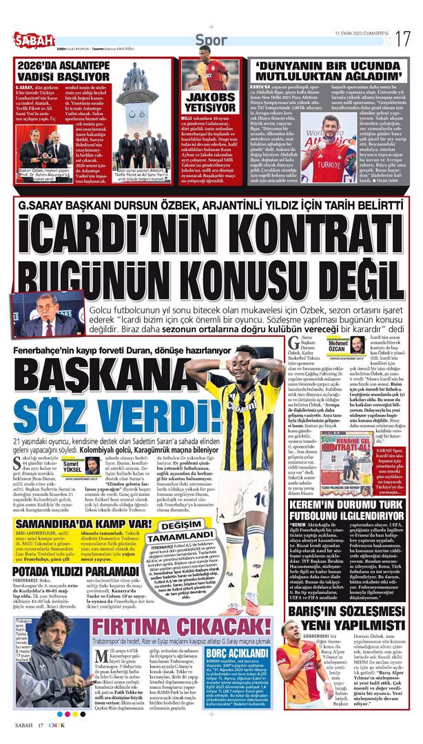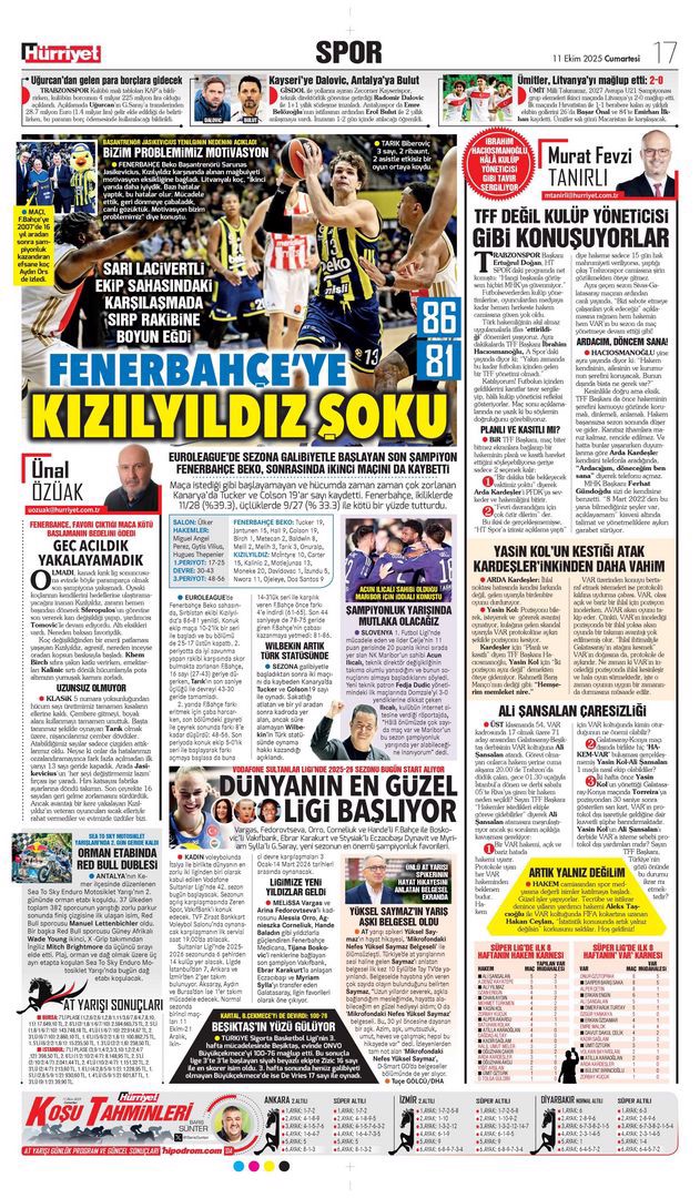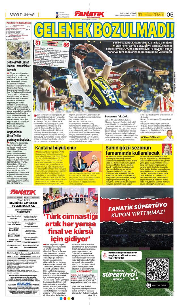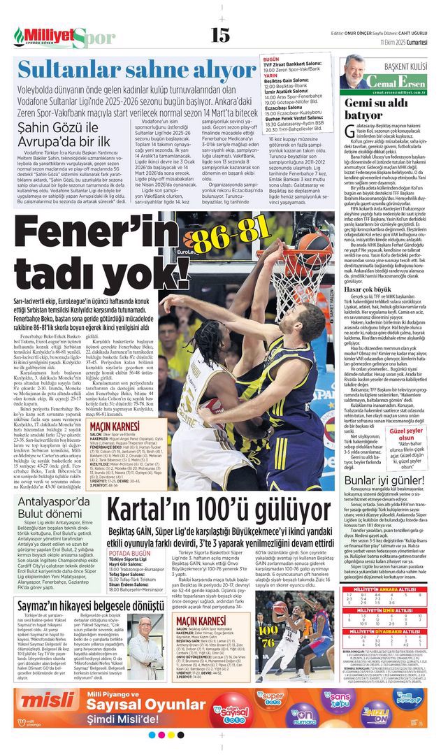 Gazetelerin spor sayfalarında günün öne çıkan manşetlerine göz atabilirsiniz.
