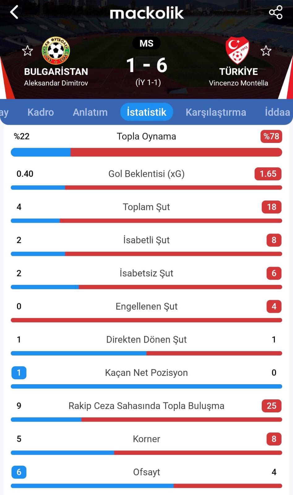 Milli Takımımız, Bulgaristan'ı deplasmanda 6-1 mağlup etti.