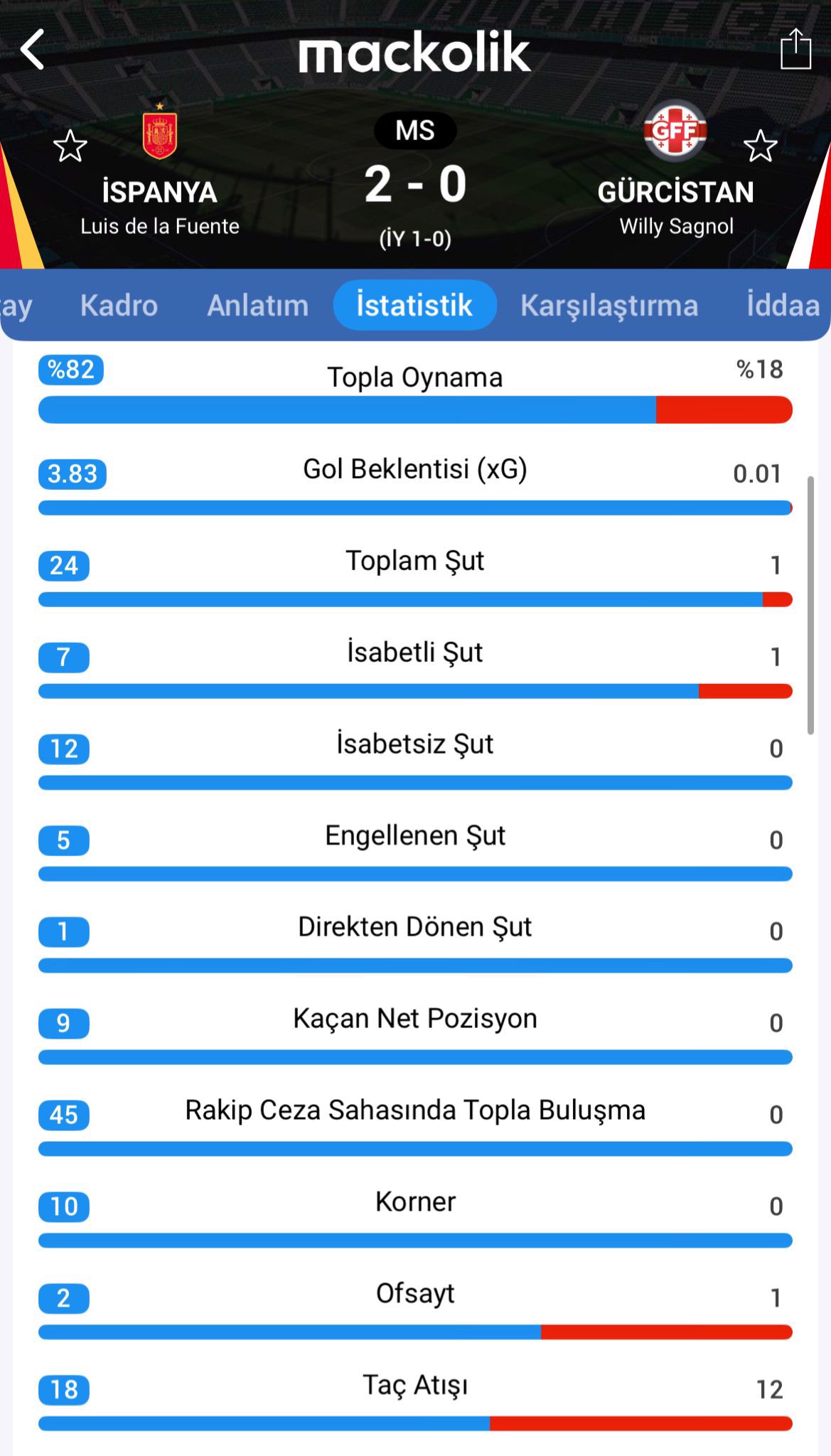 Dünya Kupası Avrupa Elemeleri'nde A Milli Futbol Takımımızın da yer aldığı E Grubu 3. maçında İspanya, sahasında Gürcistan'ı konuk etti.