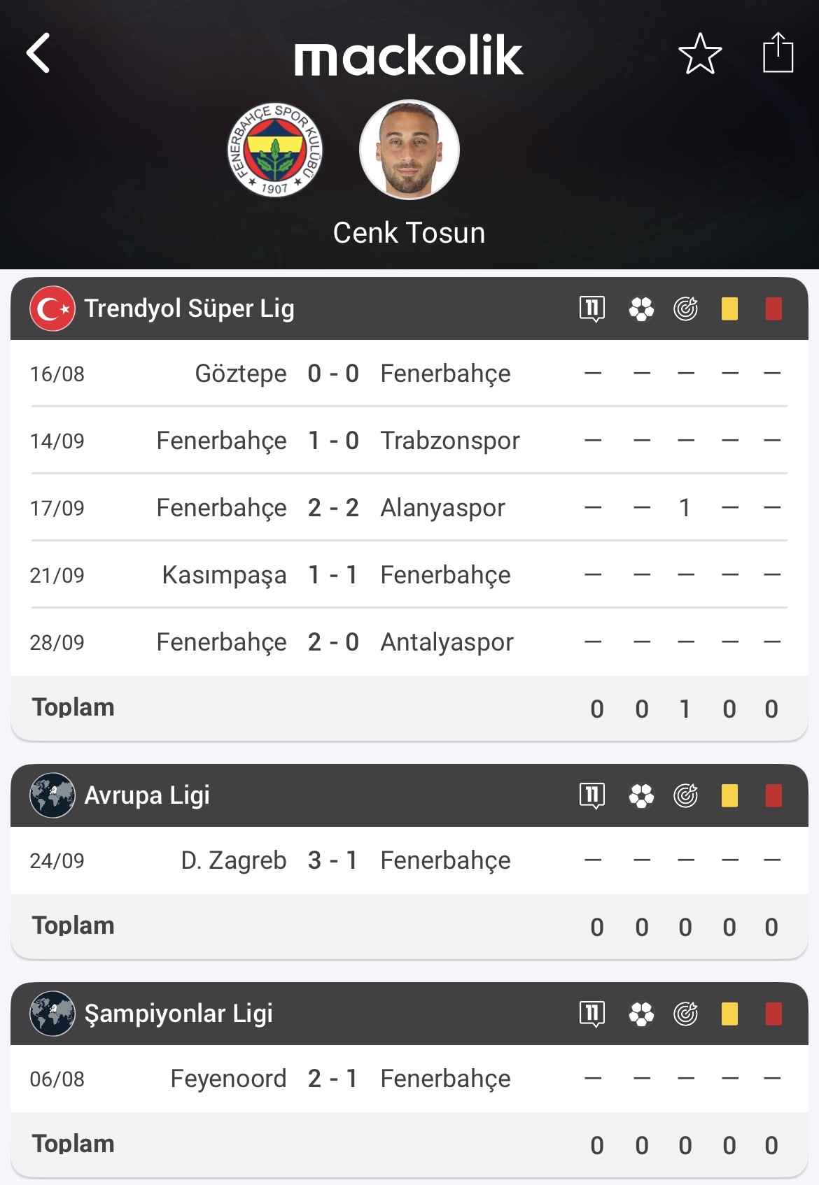 34 yaşındaki tecrübeli santrfor Cenk Tosun ise 7 karşılaşmada süre almış ve 1 asist kaydetmişti.