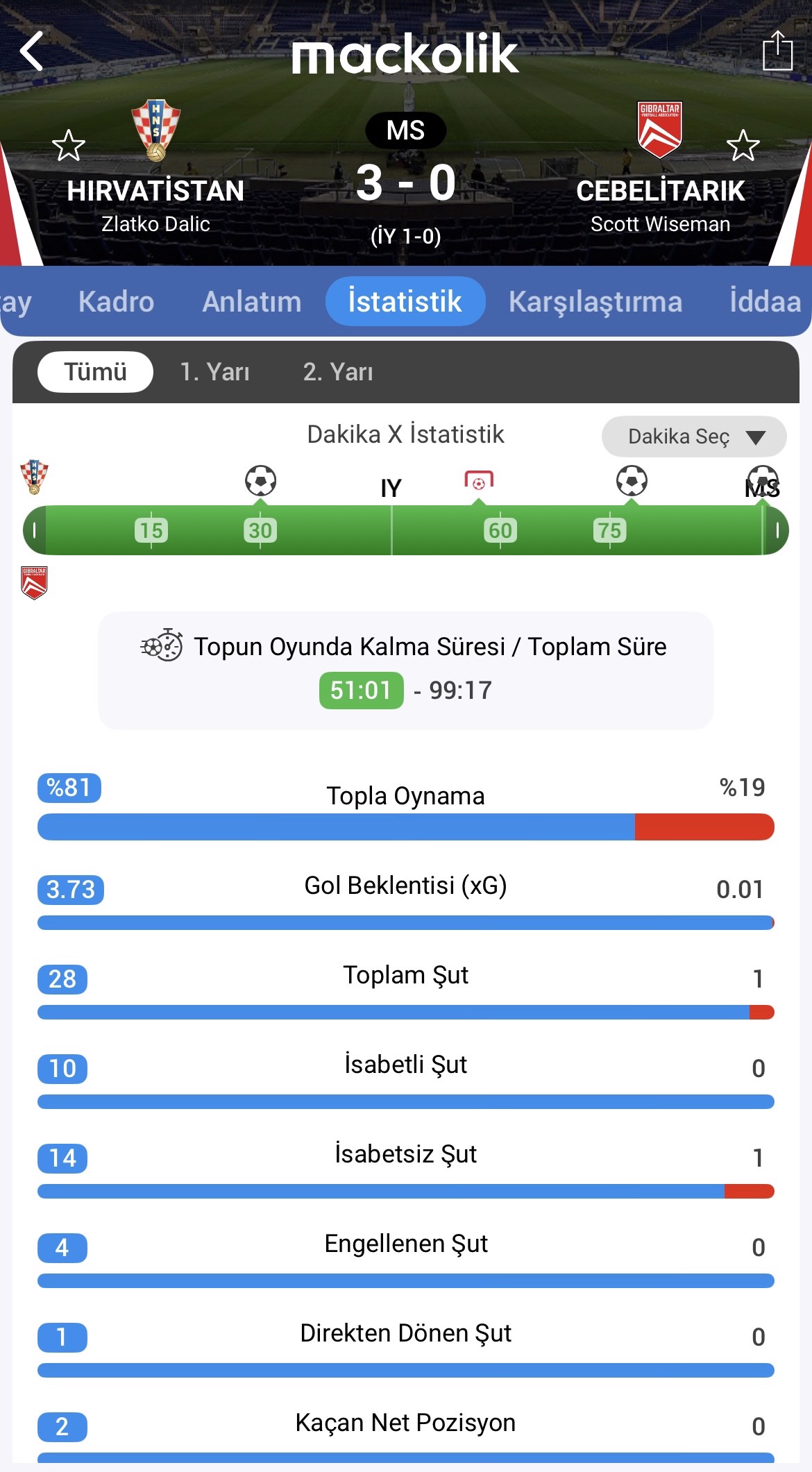 90+6. dakikada topu ağlarla buluşturan Erlic, müsabakanın skorunu belirledi. Hırvatistan, Cebelitarık'ı 3-0 yendi.