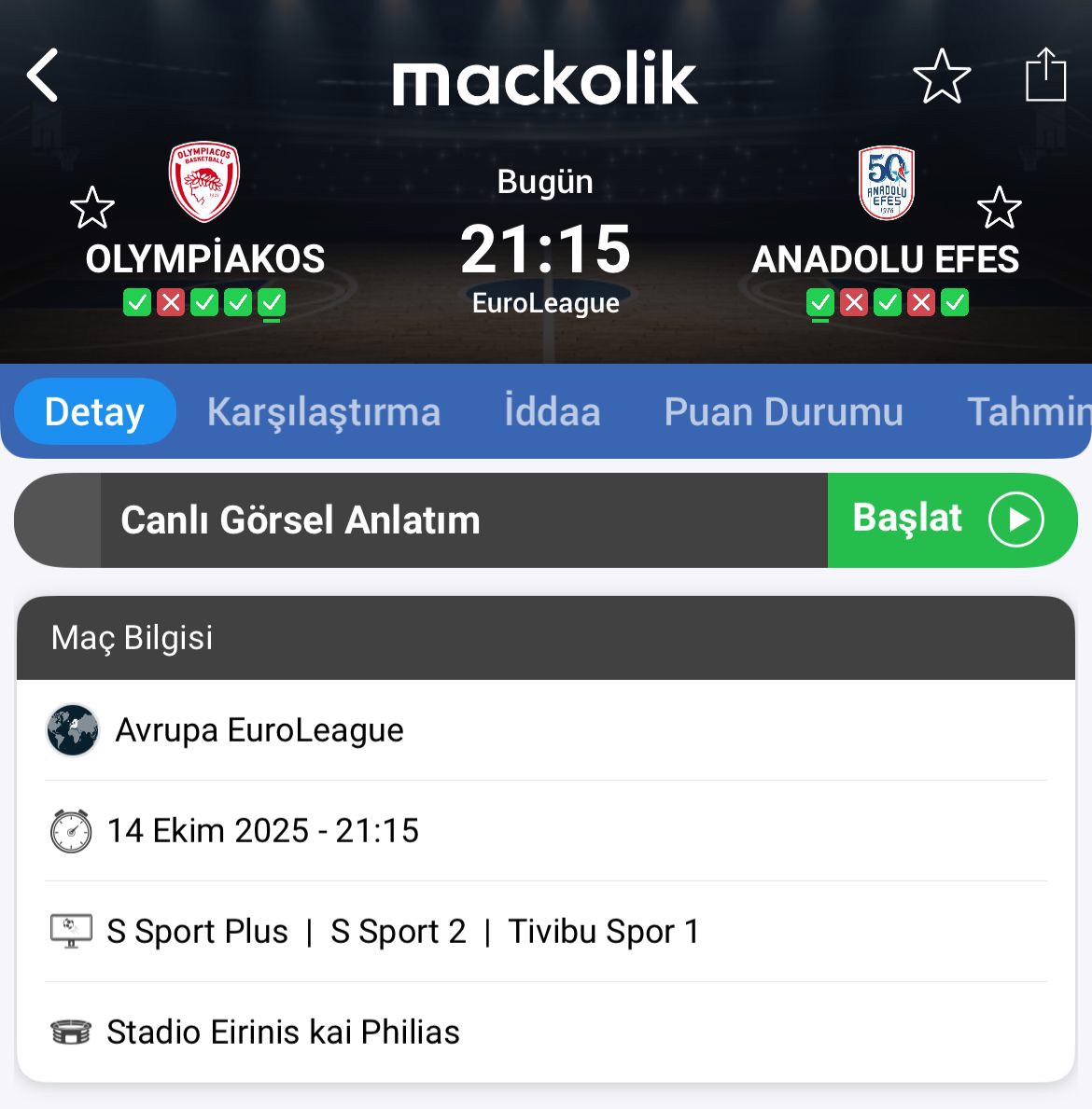 Anadolu Efes Erkek Basketbol Takımı, EuroLeague'in 4. haftasında Yunanistan'ın Olympiakos ekibine konuk olacak. Barış ve Dostluk Salonu'nda oynanacak müsabaka, TSİ 21.15'te başlayacak.