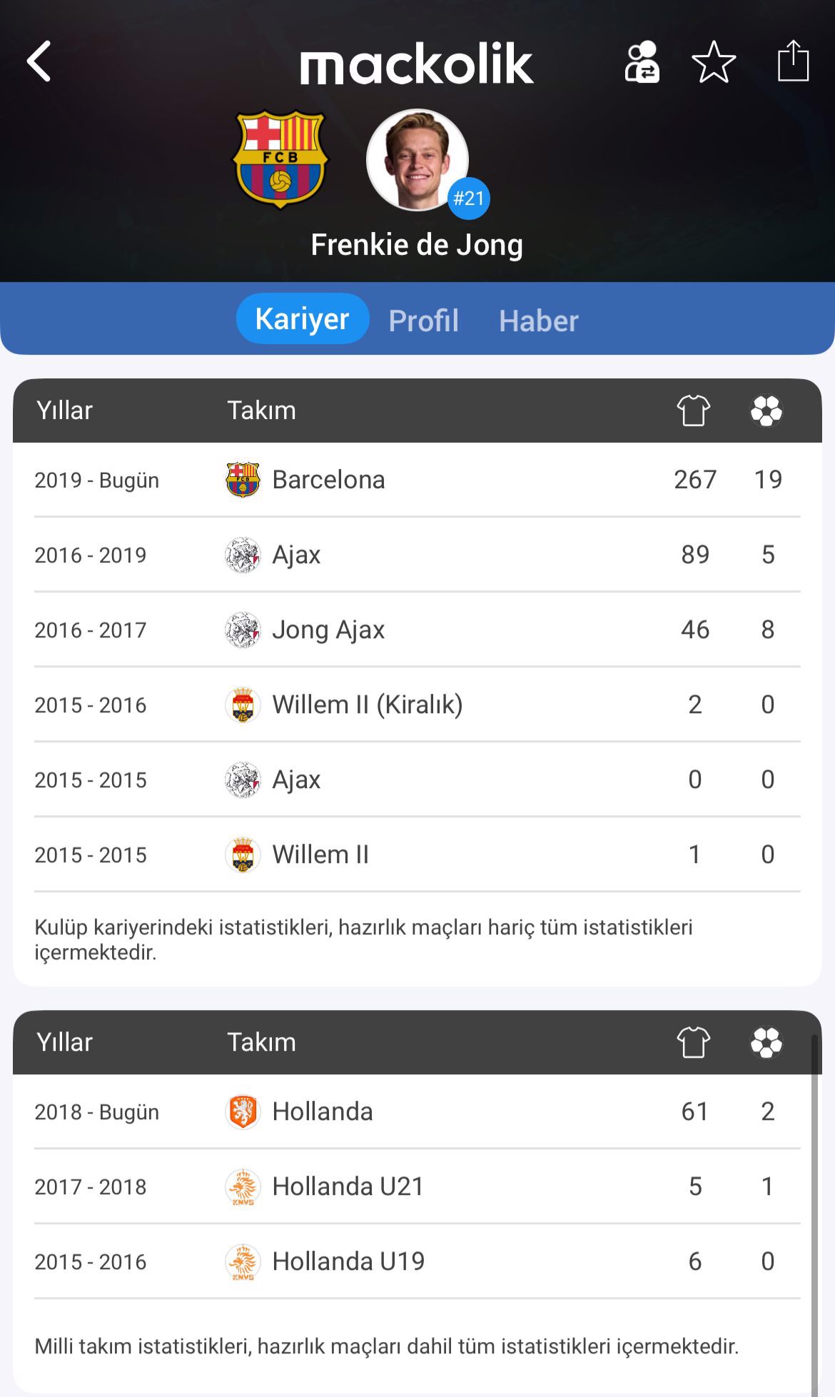 Barcelona'da 2019'dan beri forma giyen 28 yaşındaki De Jong, bu sezon 8 maçta görev yapıp 1 de asist yaptı.