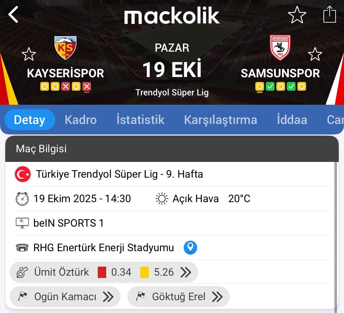 Kayserispor, Samsunspor'la 19 Ekim Pazar günü sahasında karşılaşacak.