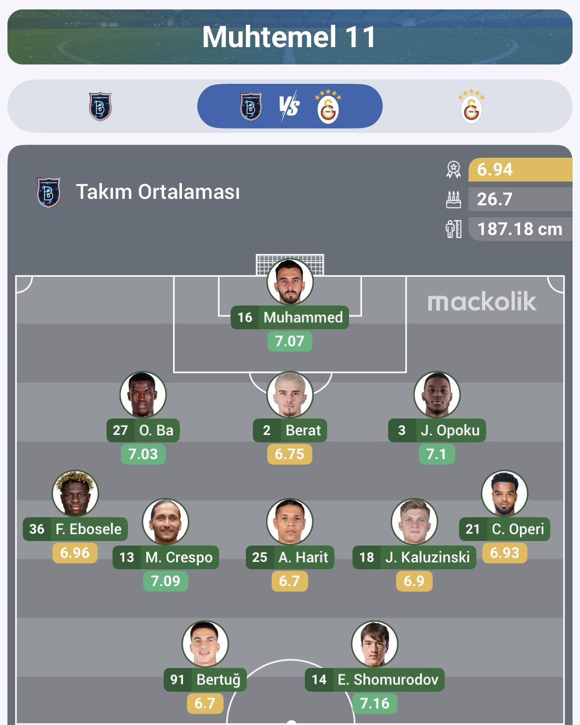 Başakşehir: Muhammed Şengezer, Opoku, Berat Özdemir, Ba, Operi, Kaluzinski, Harit, Crespo, Ebosele, Shomurodov, Bertuğ Yıldırım
