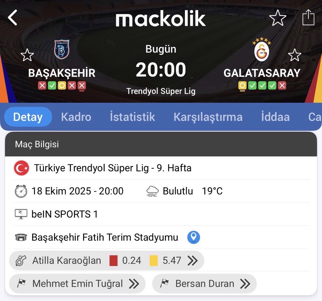 Galatasaray, Trendyol Süper Lig'in 9. haftasında deplasmanda RAMS Başakşehir ile karşılaşacak.