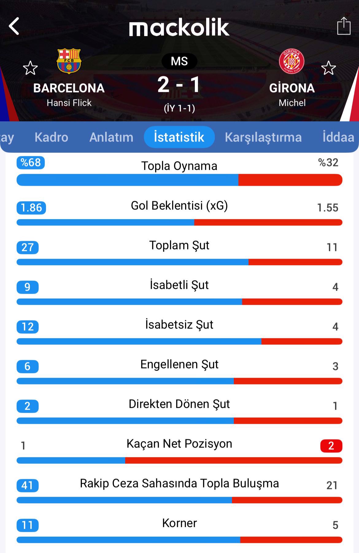 Bu skorun ardından Barcelona puanını 22'ye yükseltti. Girona ise 6 puanda kaldı.