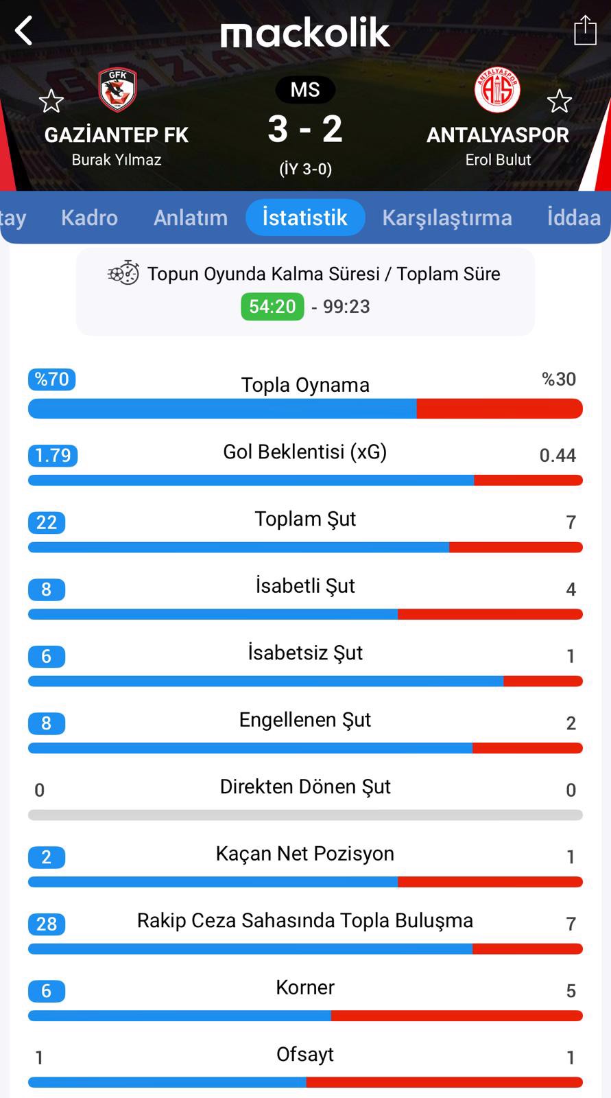 Süper Lig'in 9. haftasında Gaziantep FK, ağırladığı Hesap.com Antalyaspor'a karşı 3-2'lik skorla galip geldi. Burak Yılmaz'lı Gaziantep FK yenilmezlik serisini 7 maça çıkarırken Erol Bulut yönetimindeki Antalyaspor ilk maçında mağlup oldu.