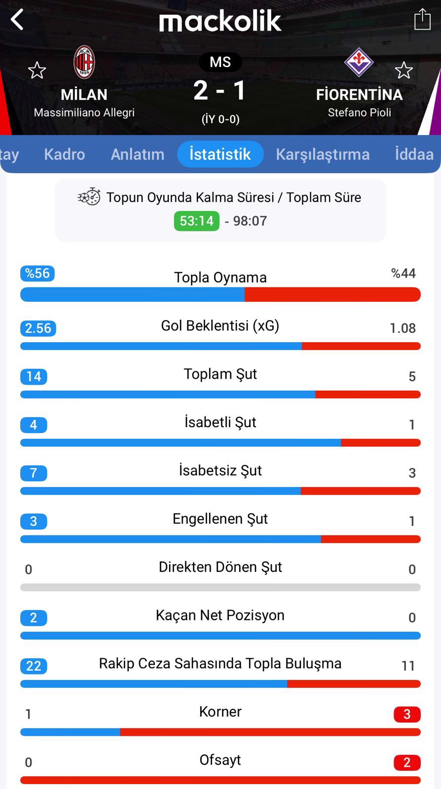 Maçtan İstatistikler