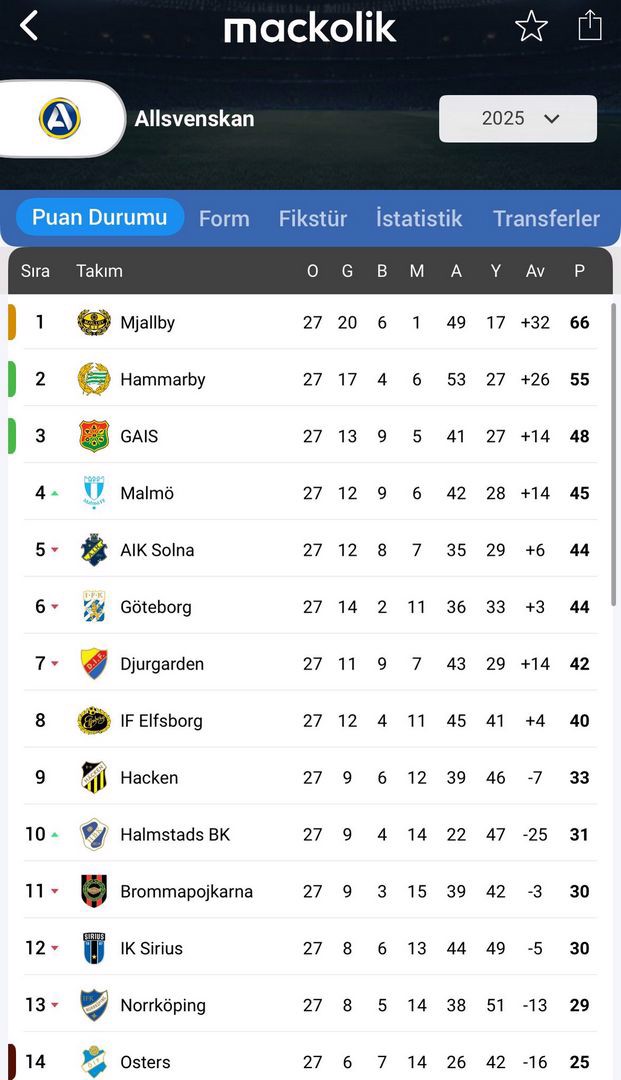 Allsvenskan'ın 27. haftasında lider Mjallby deplasmanda Göteborg ile karşılaştı.