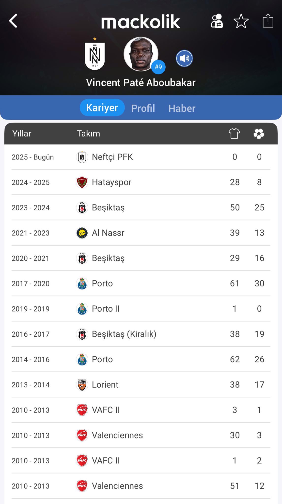 Azerbaycan'ın köklü kulübü Neftçi Bakü, Vincent Aboubakar ile 1+1 yıllık sözleşme imzalandığını duyurdu.