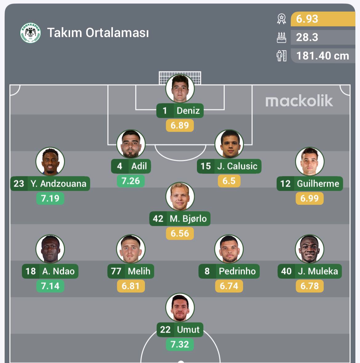 Konyaspor: Deniz, Andzouana, Adil, Calusic, Guilherme, Bjorlo, Ndao, Melih, Pedrinho, Muleka, Umut