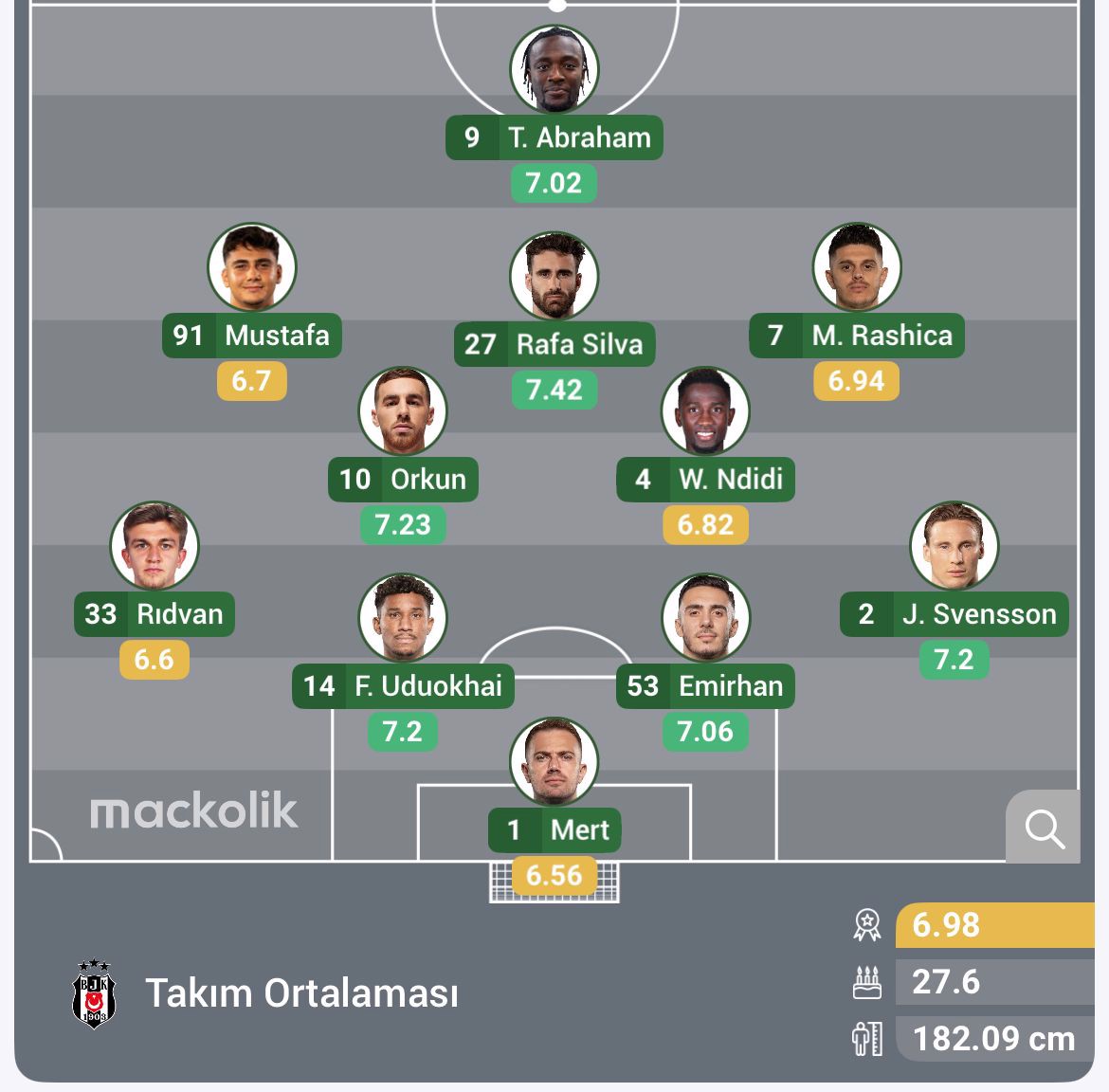 Beşiktaş: Mert Günok, Svensson, Emirhan Topçu, Uduokhai, Rıdvan Yılmaz, Ndidi, Orkun Kökçü, Rashica, Rafa Silva, Mustafa, Abraham