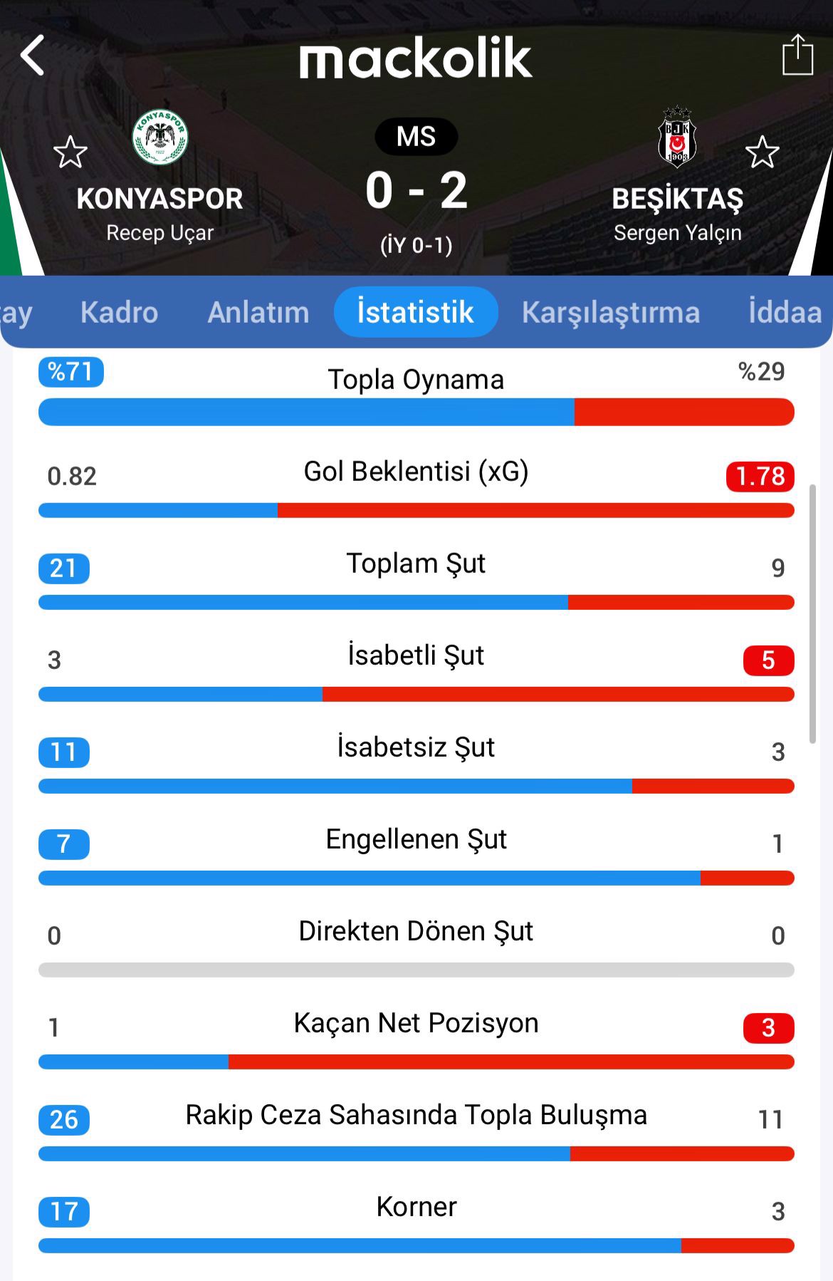 Kalan dakikalarda başka gol olmayınca Beşiktaş, Konyaspor'u 2-0 mağlup etti.