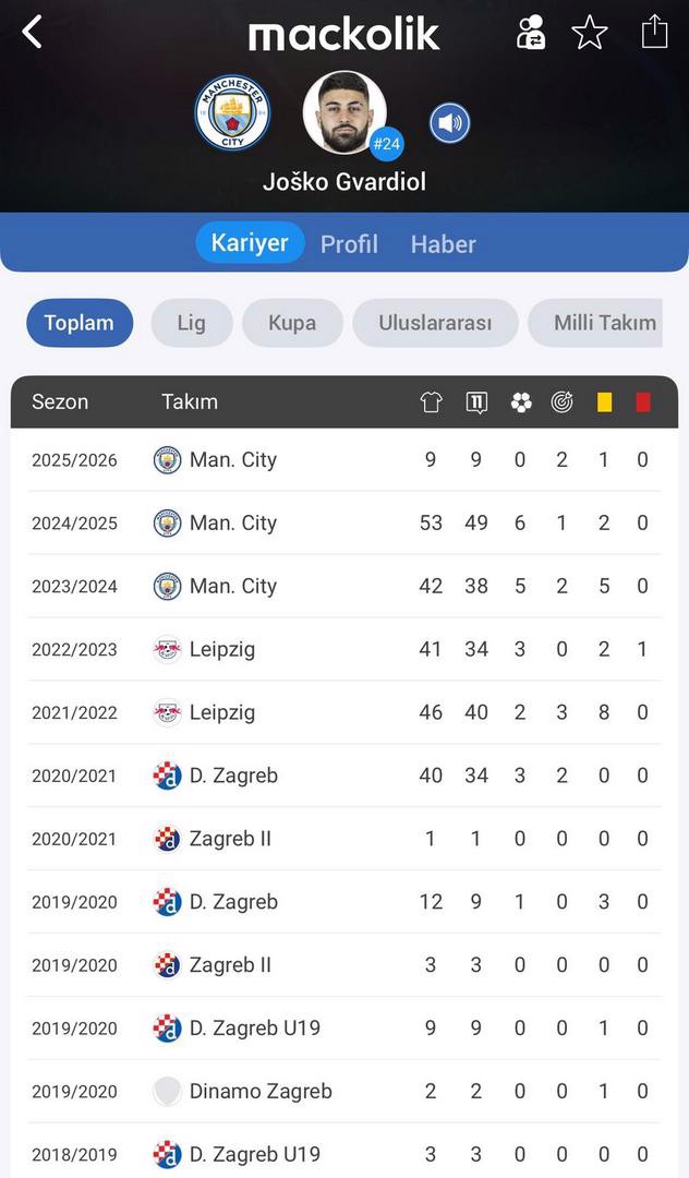 2023 yazında ise 77 milyon sterlin karşılığında Manchester City'ye imza atan Gvardiol, dünya futbol tarihinin en pahalı ikinci savunmacısı ünvanını aldı.