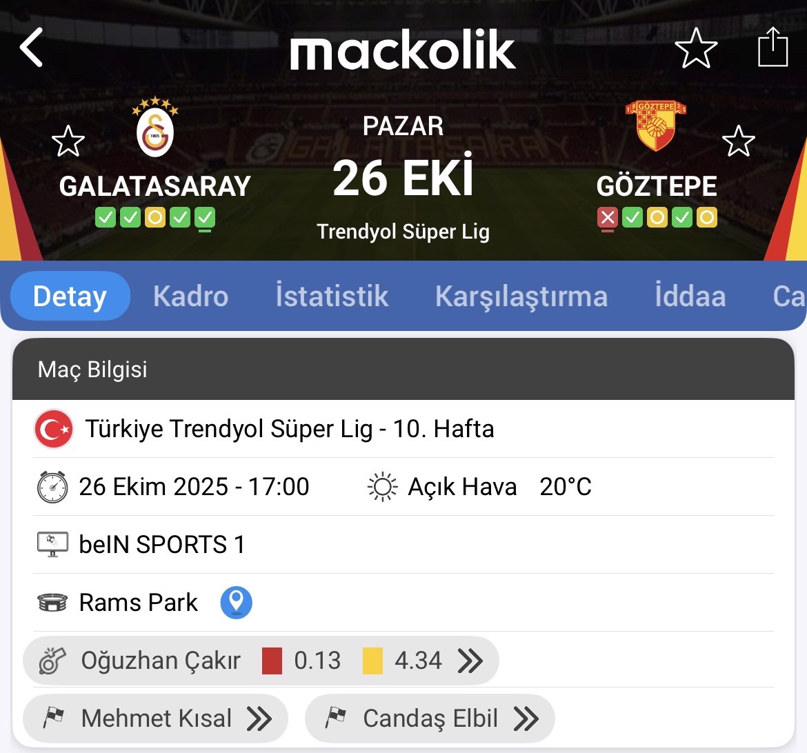 Maç Önü İstatistikleri