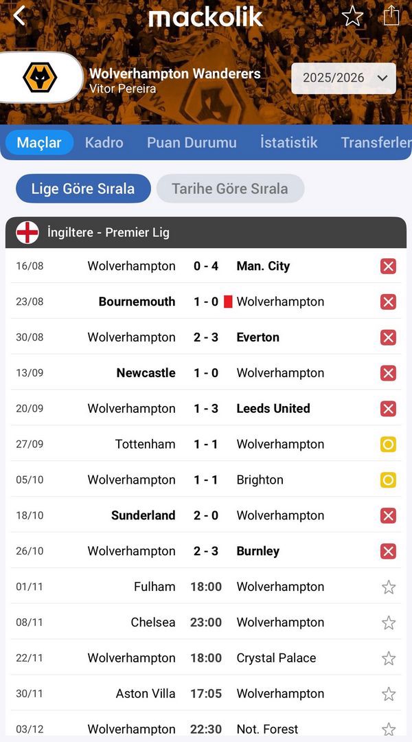 Premier Lig'de ilk 9 haftada yalnızca 2 puan toplayan Wolverhampton, İngiltere'nin dört profesyonel lig kademesi arasında henüz galibiyet alamayan tek takım konumunda.