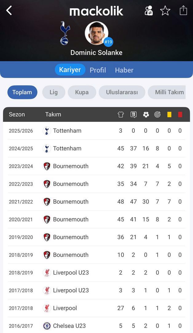 Chelsea ve Liverpool altyapılarında yetişen Solanke, 2024 yazında Bournemouth'tan Tottenham'a transfer olmuştu.