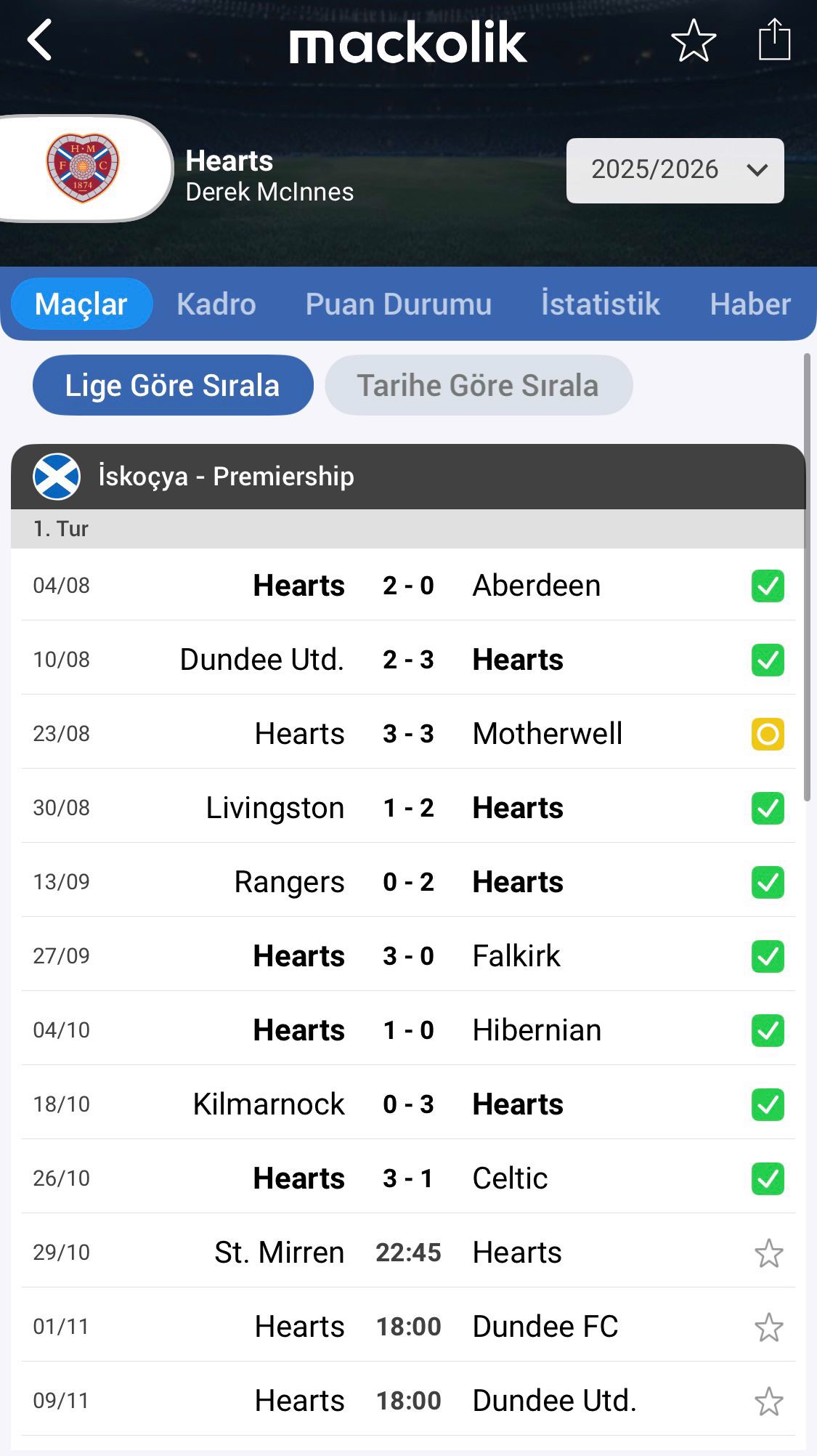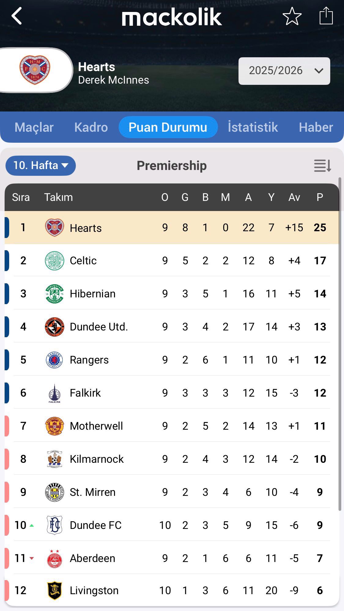 Tüm bunlar göz önüne alındığında Hearts'ın önünde şampiyonluk için uzun bir yol bulunuyor. Rangers'ın eski gücünde olmayışı, Celtic'in ise istikrarsız performansı göz önüne alındığında yıllar sonra bir mucizevi şampiyonluk görüp göremeyeceğimiz merak konusu.