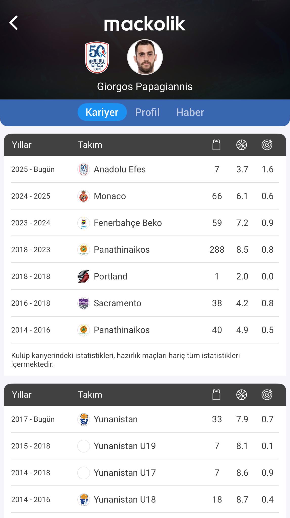 Papagiannis, bu sezon lacivert-beyazlılarda 7 maçta forma giydi.