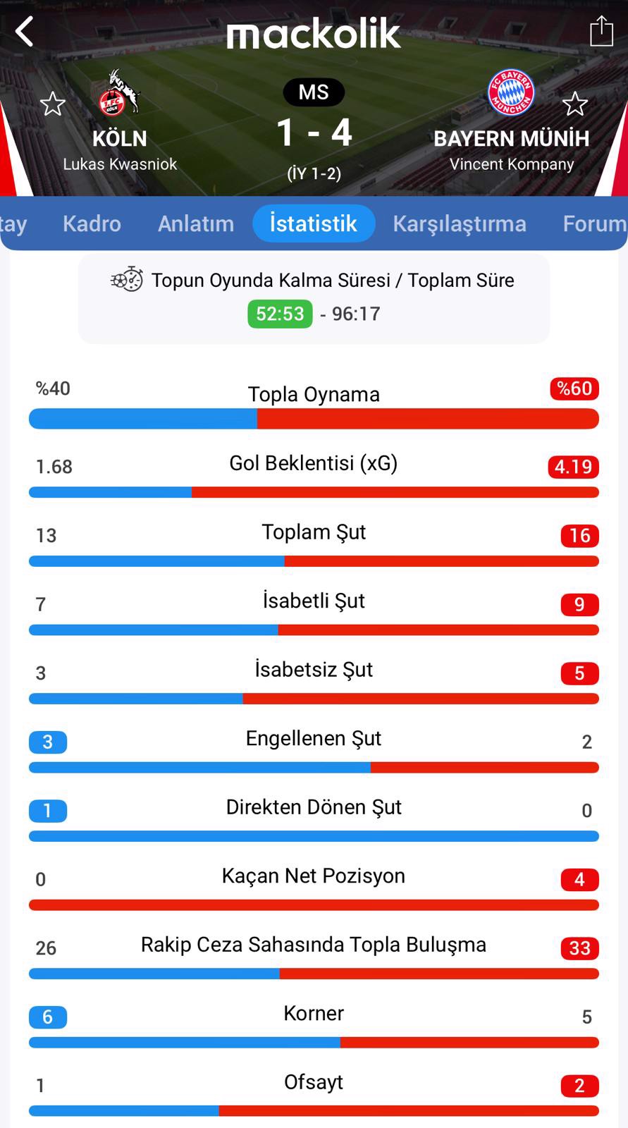 Öte yandan Köln'de 65. dakikada oyundan çıkan Bülter yerine Cenk Özkacar maça dahil oldu.