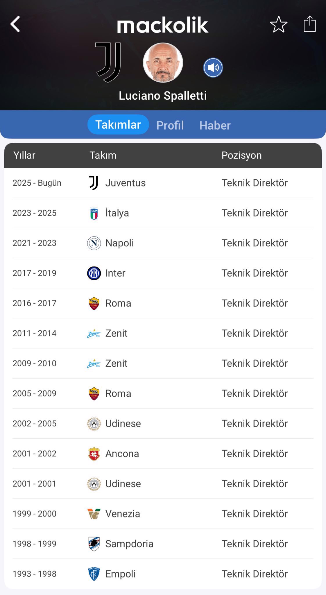 Güney ekibine 33 yıl sonra Serie A'yı kazandıran Spalletti, son olarak da İtalya Milli Takımı'nı çalıştırdı.
