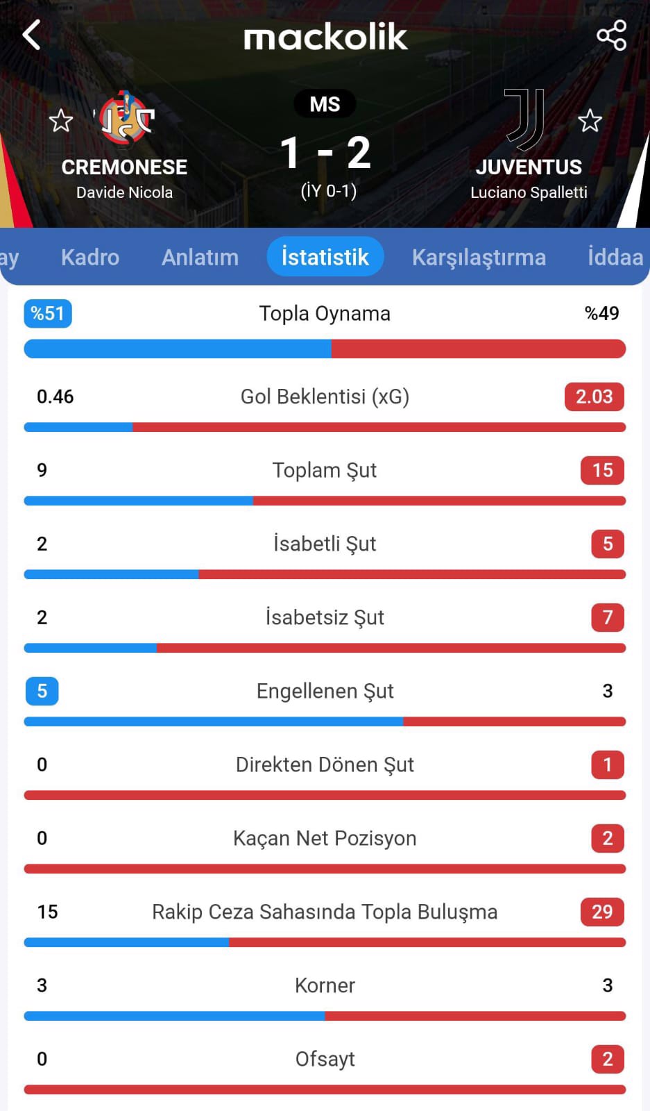 Serie A'nın 10 haftasında Cremonese, Juventus'u ağırladı.