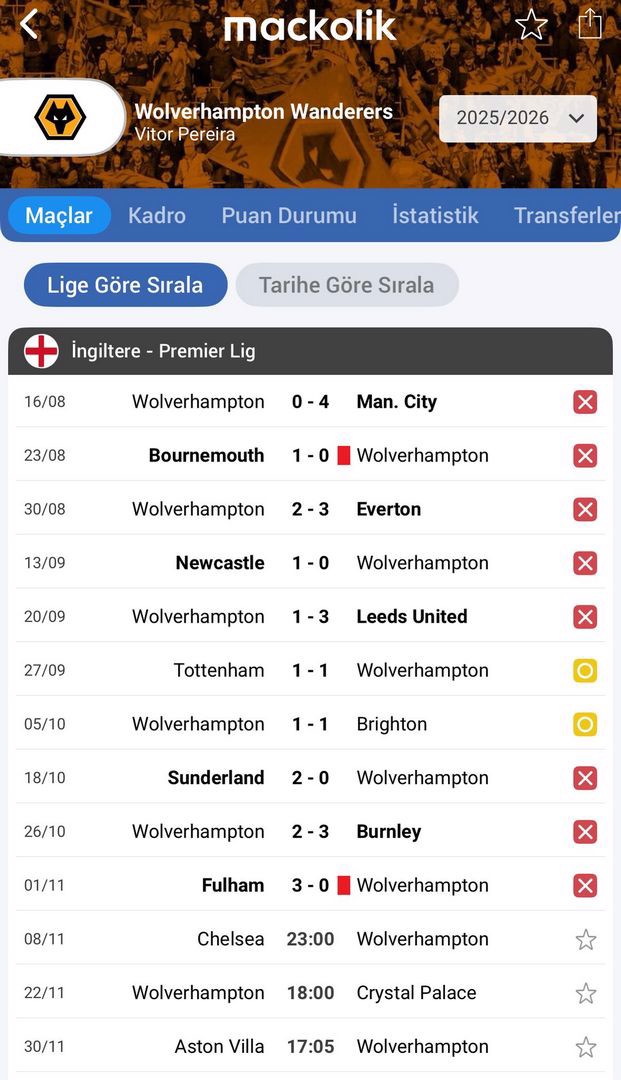 Geçen aralık ayında Wolverhampton'ın başına geçen Vítor Pereira, takımı düşme hattından uzaklaştırarak sezonu 16. sırada tamamlamıştı. Ancak bu yaz kadro büyük ölçüde değişti. Matheus Cunha, Rayan Ait-Nouri ve Nelson Semedo gibi kilit oyuncuların ayrılması, Wolverhampton'da dengeleri bozdu. Yeni transferlerin takıma uyumu beklenenden uzun sürdü ve Wolves, sezona zayıf bir başlangıç yaptı.