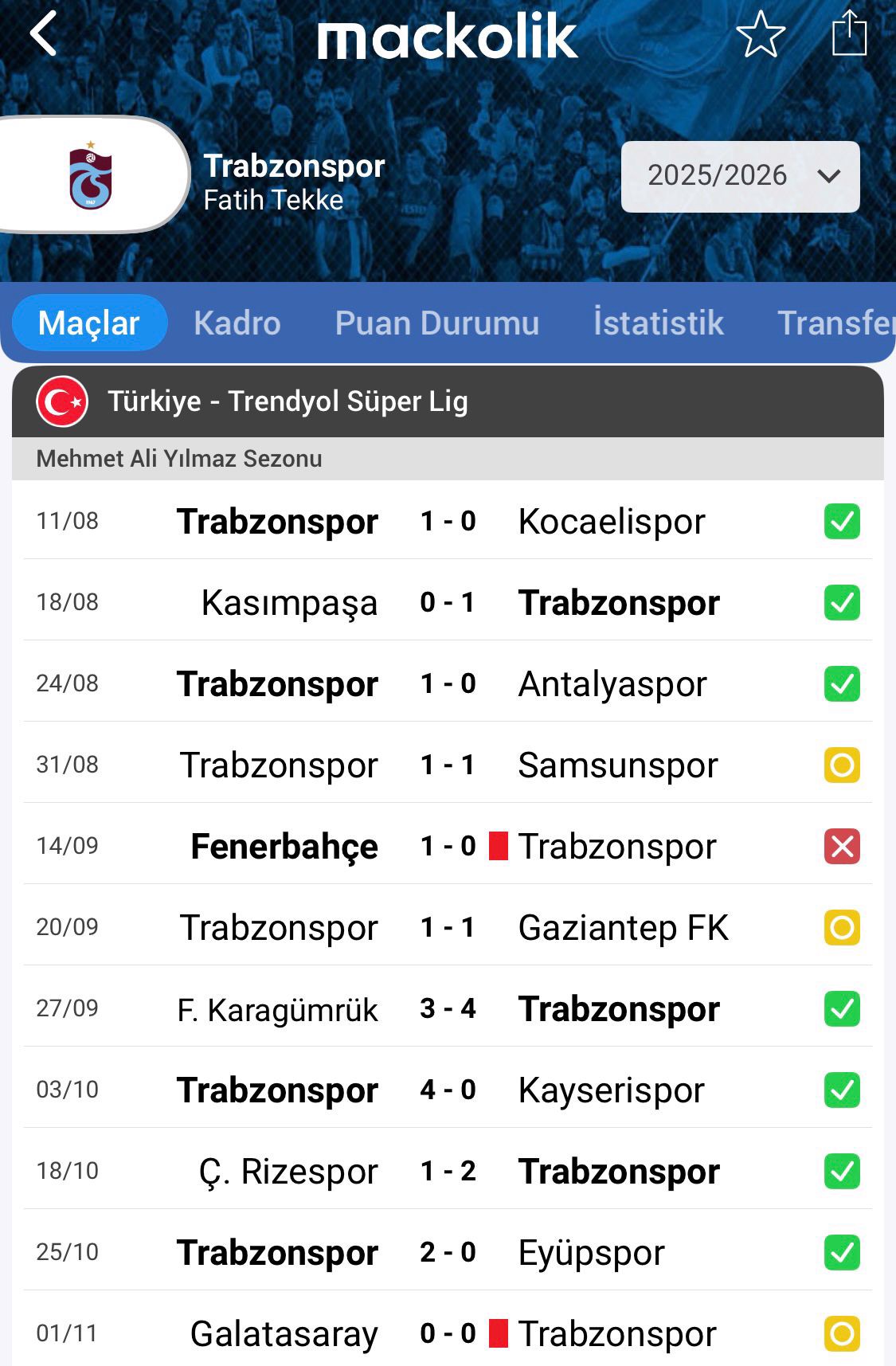 Trendyol Süper Lig'de Galatasaray deplasmanından 0-0 beraberlikle dönen Trabzonspor, teknik direktör Fatih Tekke yönetiminde çıktığı 22 lig maçında 3 yenilgi aldı.