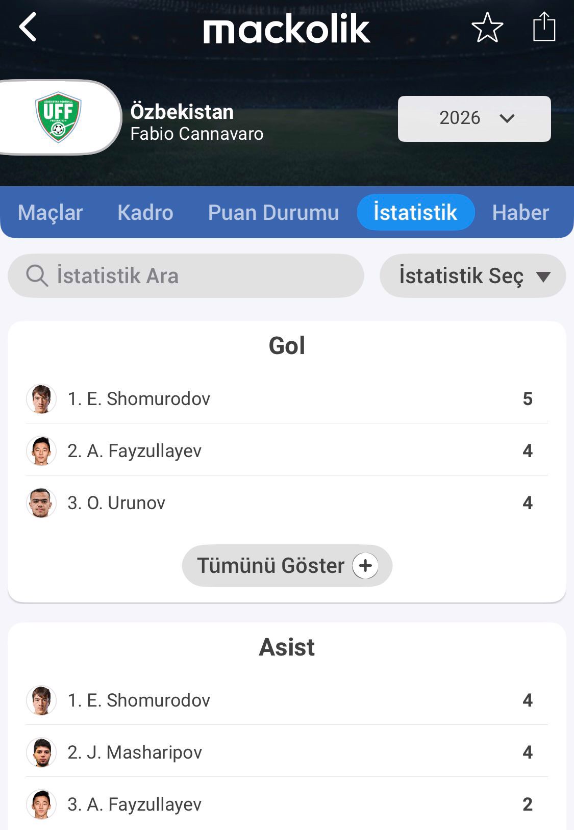 Geçtiğimiz hafta Kocaelispor karşılaşmasında son dakikada attığı golle takımına 3 puan kazandıran Shomurodov'u, Özbekistan Milli Takımı'nın yeni teknik direktörü Fabio Cannavaro tribünden takip etmişti.