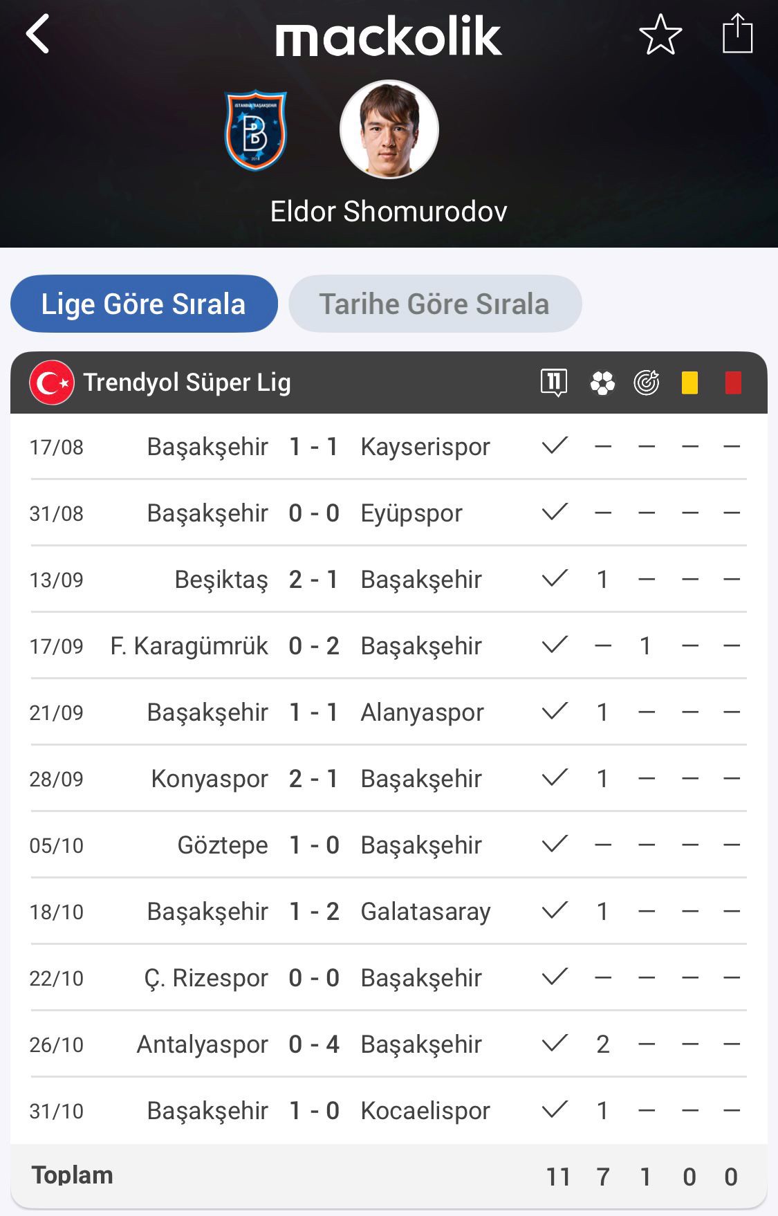 Gösterdiği performansla Başakşehir'i sırtlayan Shomurodov, 7 golle takımının en skorer oyuncusu konumunda. Onu 3 golle Davie Selke takip ediyor. Gol ve asist toplamında 9 katkıya ulaşan Özbek forvet, 5,6'lık gol beklentisi (xG) değeriyle de takımının en çok gol pozisyonu üreten ismi durumunda.