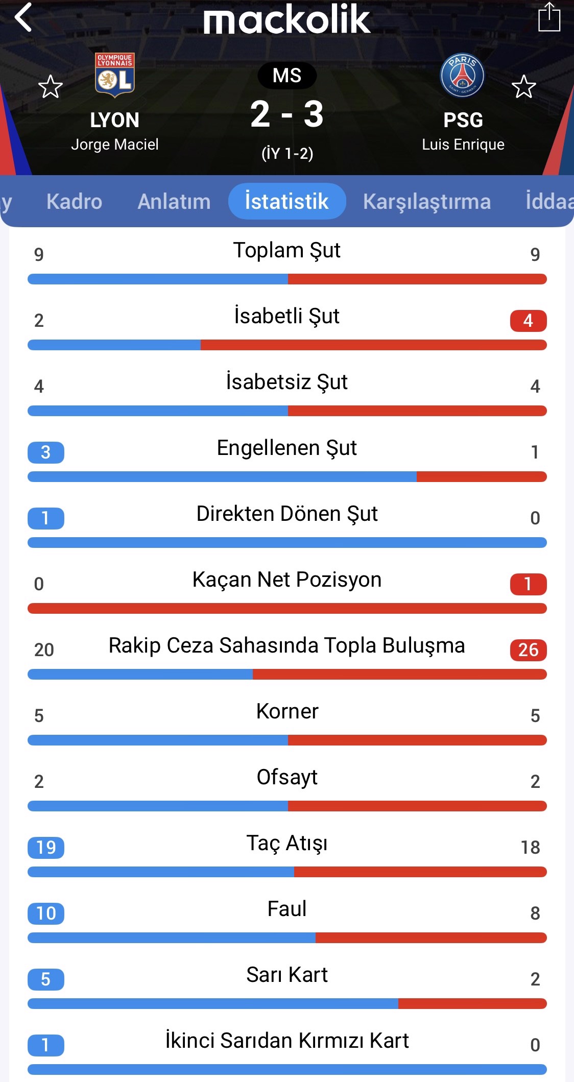 İkinci yarıda Lyon, Maitland-Niles'ın golüyle skoru 2-2'ye getirerek mücadelede dengeyi sağladı. Ancak 90+3'te ev sahibi ekipten Tagliafico, PSG'li Lee'ye yaptığı müdahale sonrası ikinci sarı karttan kırmızı kartla oyun dışı kaldı. 90+5'te ise konuk ekipten Joao Neves, köşe vuruşunda attığı kafa golüyle PSG'yi öne geçirerek maçı takımına kazandırdı.