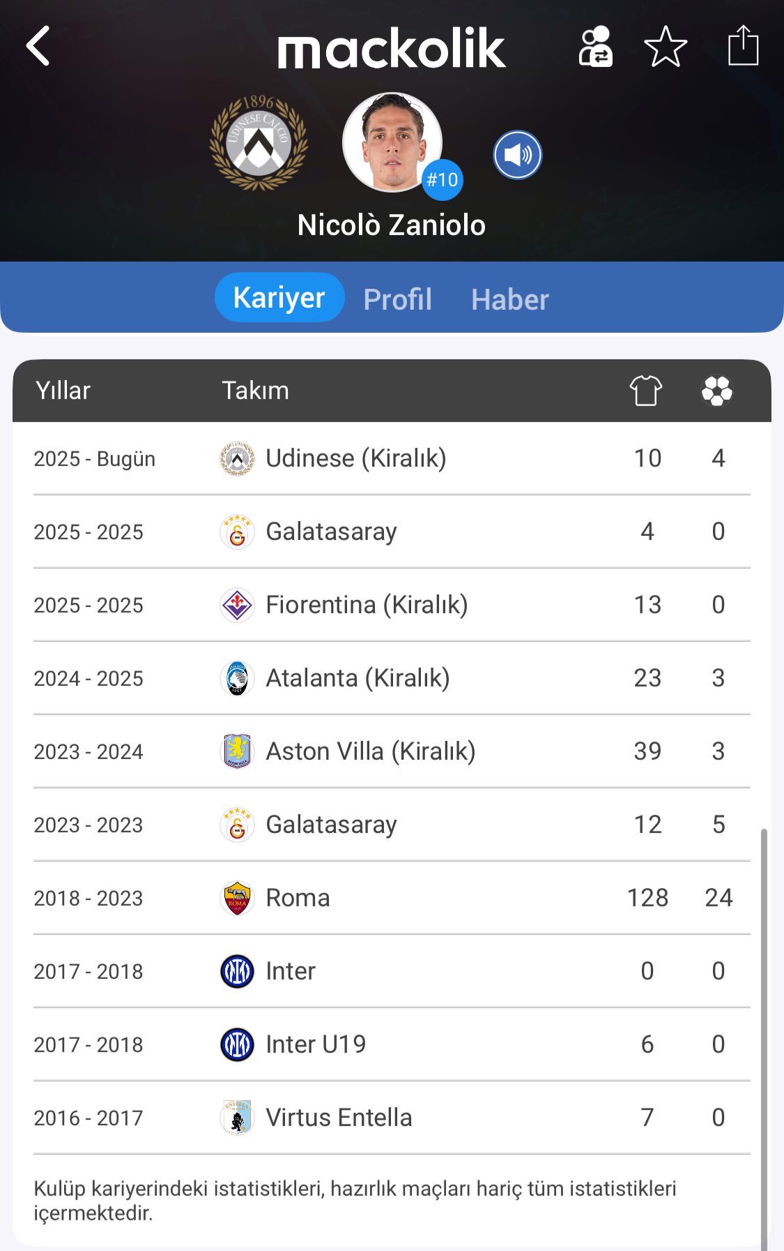 Öte yandan Udinese'nin de 2027'ye kadar Galatasaray'la sözleşmesi bulunan Zaniolo için satın alma opsiyonu bulunuyor. Kısa süre önce kariyerine İtalya'da devam etmek istediğini dile getiren genç oyuncunun da tekliflere sıcak bakacağı iddia edildi.