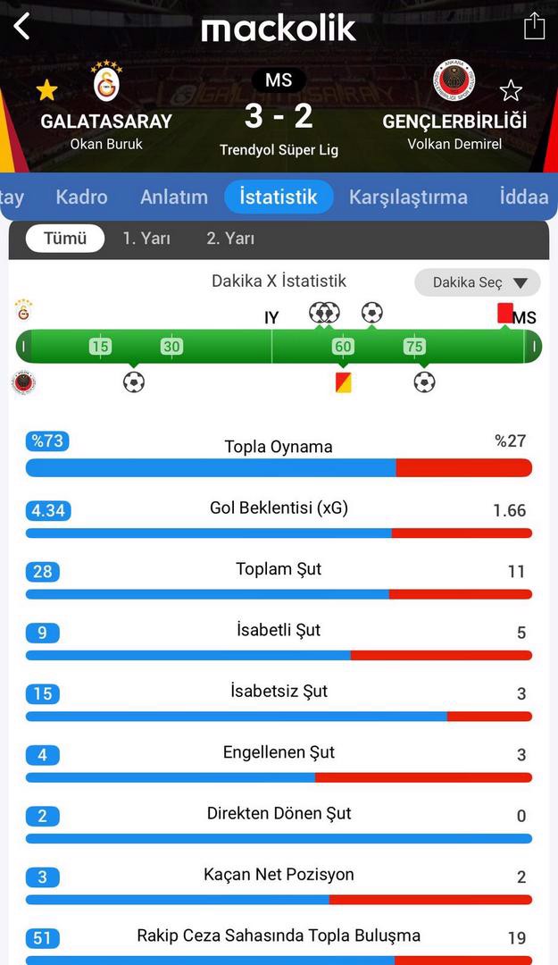 66. dakikada Galatasaray farkı 2'ye çıkardı. Barış Alper Yılmaz'ın sol kanattan yaptığı ortada altıpas içinde topu kontrol eden İlkay, meşin yuvarlağı ağlarla buluşturdu: 3-1
