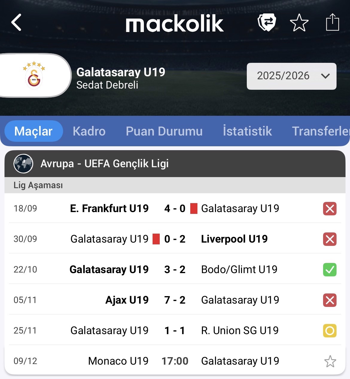 Bu sonuçla sarı-kırmızılıların UEFA Gençlik Ligi'ndeki kaderi son haftaya kaldı.
