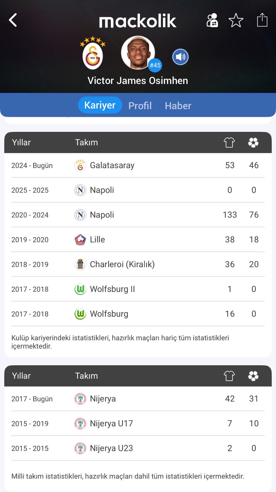 Nijeryalı forvet bu sezon Galatasaray formasıyla 12 maça çıkarken 9 da gol katkısında bulundu.