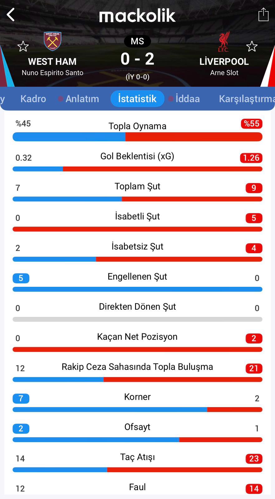 Premier Lig'in 13. haftasında West Ham United deplasmanına konuk olan Liverpool, Alexander Isak'ın Liverpool formasıyla attığı ilk gol ve Cody Gakpo'nun golü ile West Ham United'ı 2-0 mağlup etti.