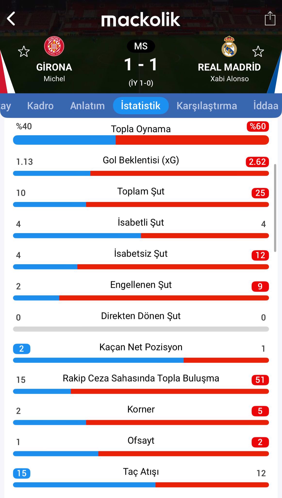 Bu beraberlikle Real Madrid puanını 33'e, Girona ise 12'ye yükseltti.