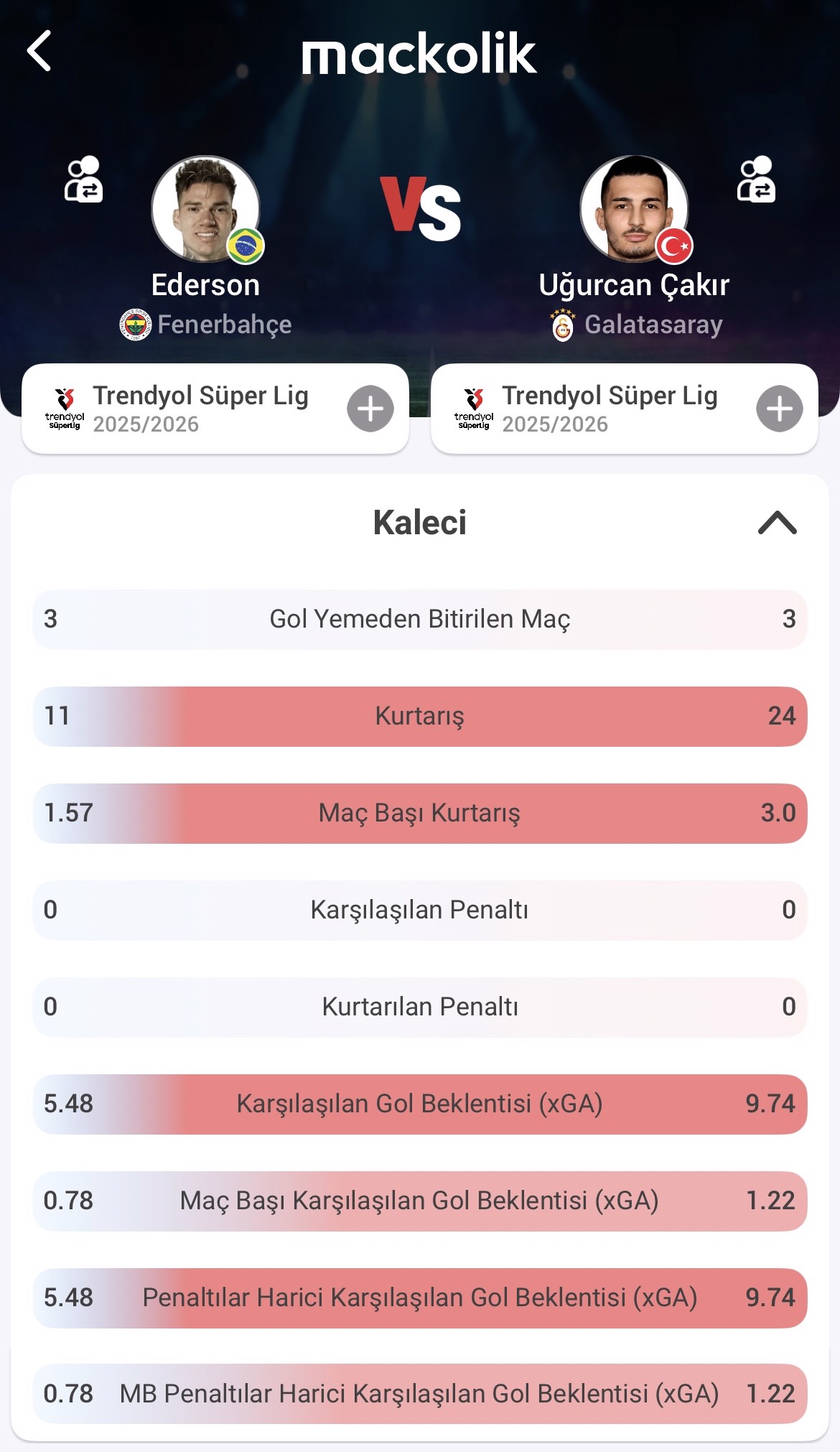 Mackolik'in "Oyuncu Karşılaştırma" özelliğiyle iki takımın file bekçilerini karşılaştırdık.